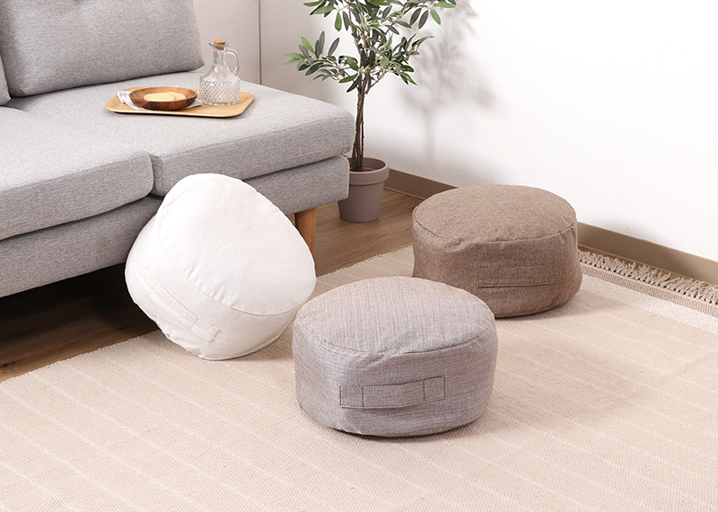 オフシーズンの羽毛布団や来客用の布団など、収納の少ない賃貸や限られたスペースのクローゼットでは収納場所を確保するのも一苦労。そのお悩みを解決するため、布団をリビングで見せ置きできるクッションに変えるクッションカバーを用意しました。布団を詰めるだけで、流行りの大きなクッションに。クローゼットを圧迫していた布団がおしゃれなインテリアとして生まれ変わります。