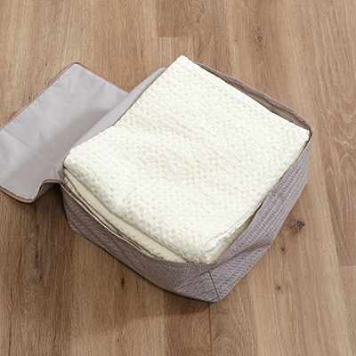2.ケースの生地はインテリアに映える表情の素材。洗濯も可能なので、床置きでホコリの付着が気になる時も気軽に洗えます。