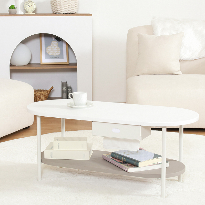 Chamill ティッシュ収納付テーブル グレージュ