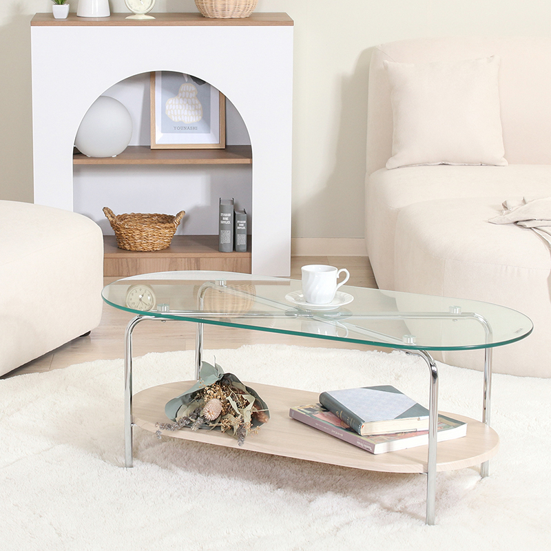 Chamill ガラスセンターテーブル 木目