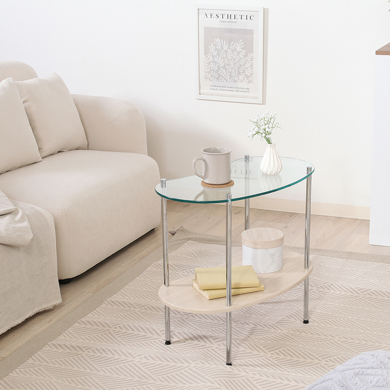 Chamill ガラスサイドテーブル 木目