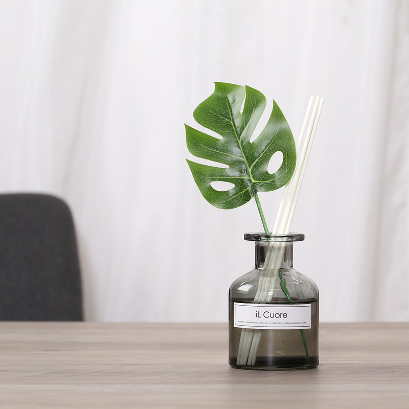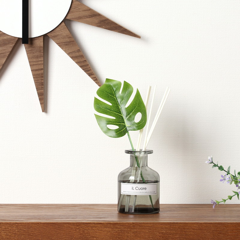 フレグランスオイルの入った瓶にスティックを挿しておくだけで香りが広がります。