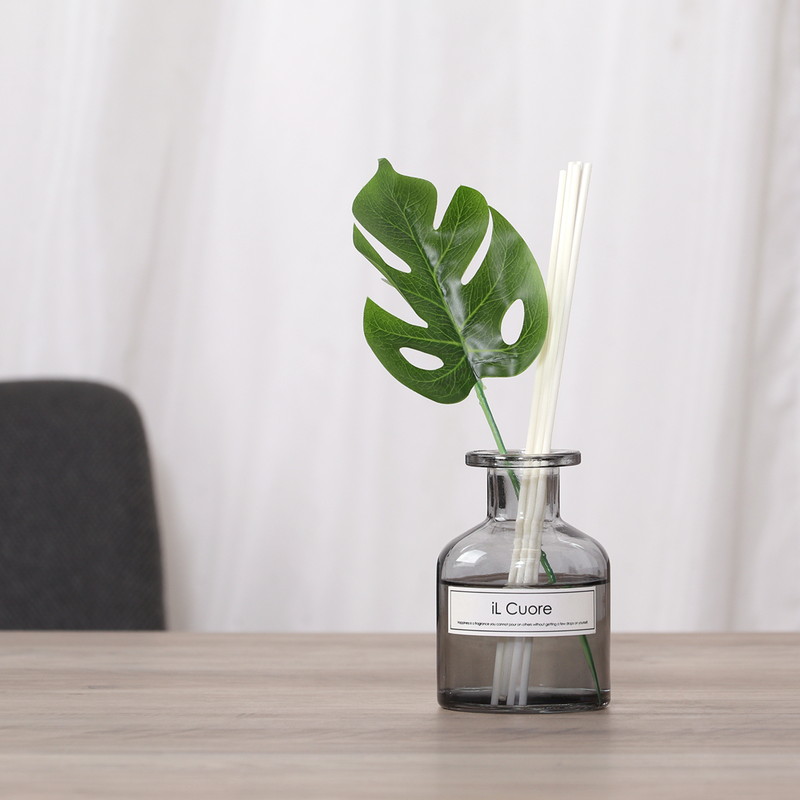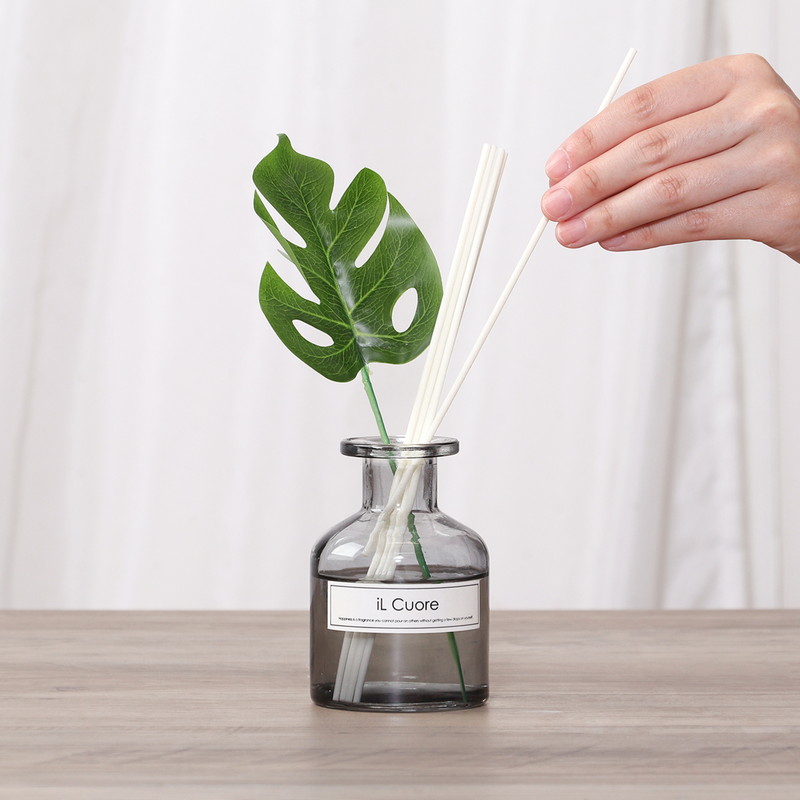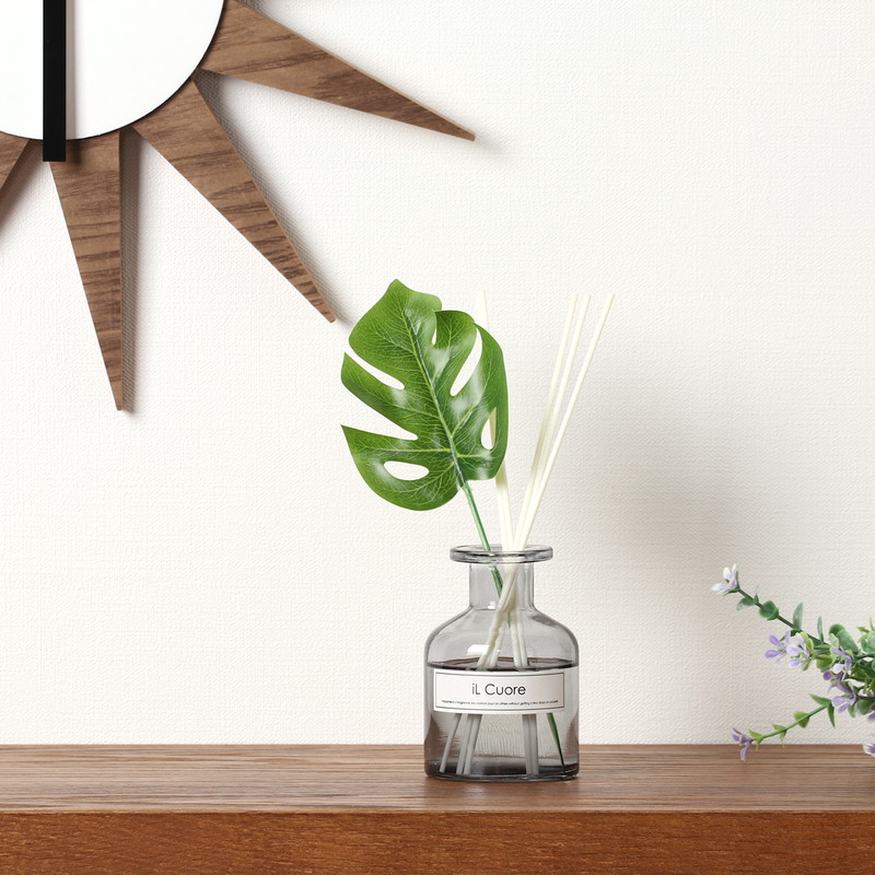 フレグランスオイルの入った瓶にスティックを挿しておくだけで香りが広がります。