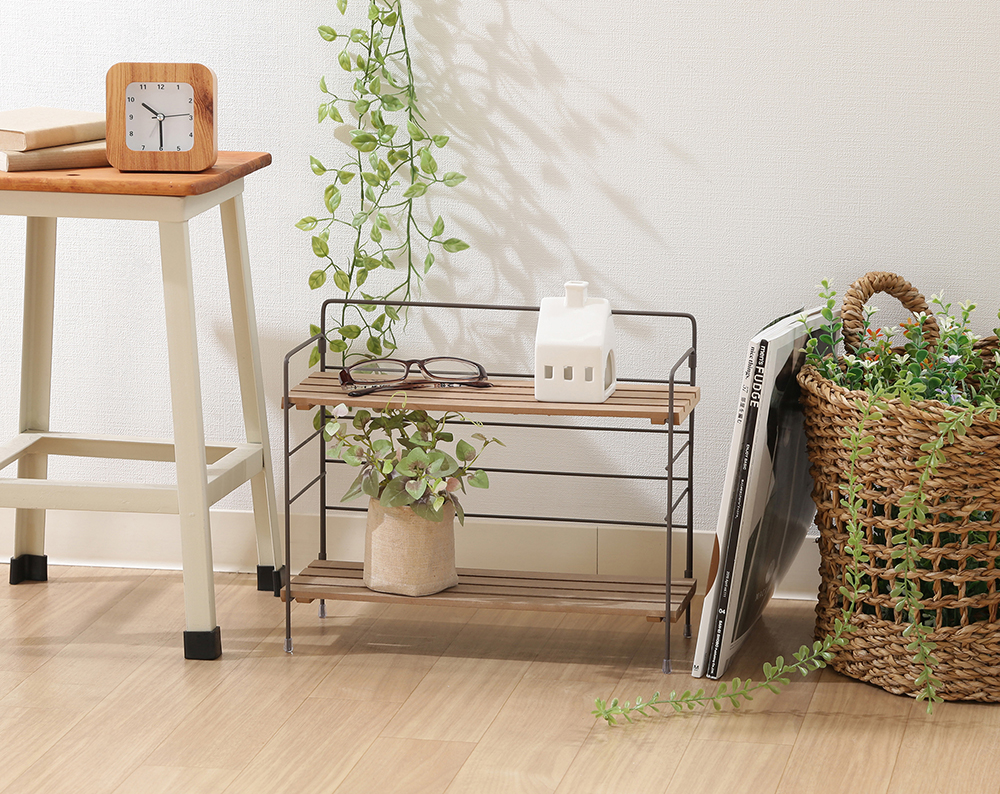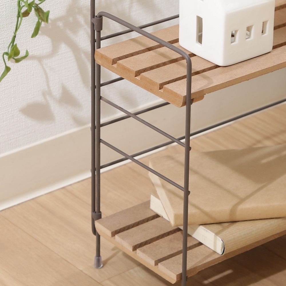 棚板とフレームの色味がナチュラル色で、お部屋に優しく溶け込みます。