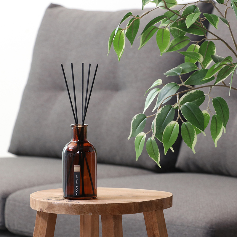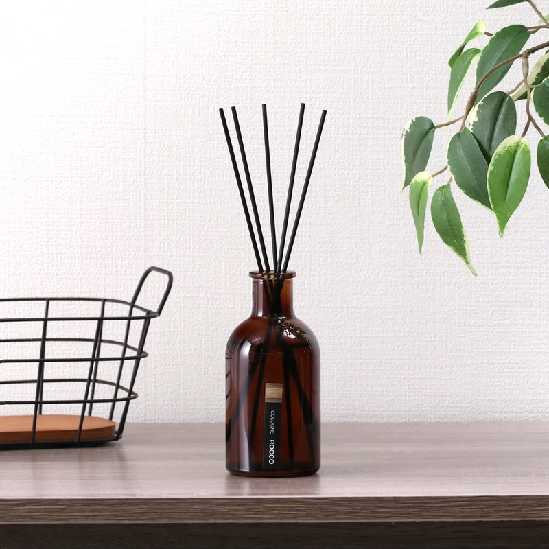 フレグランスオイルの入った瓶にスティックを挿しておくだけで香りが広がります。