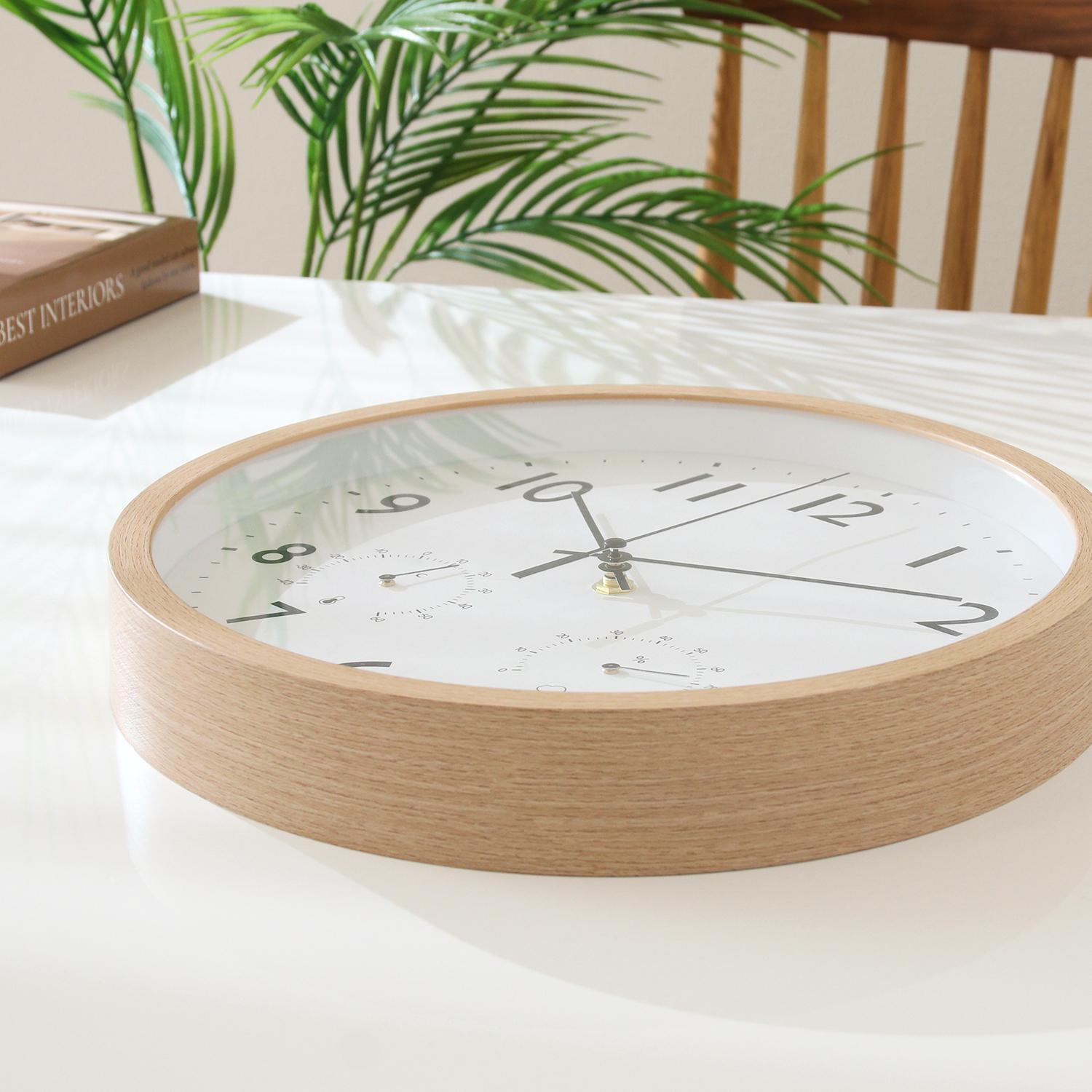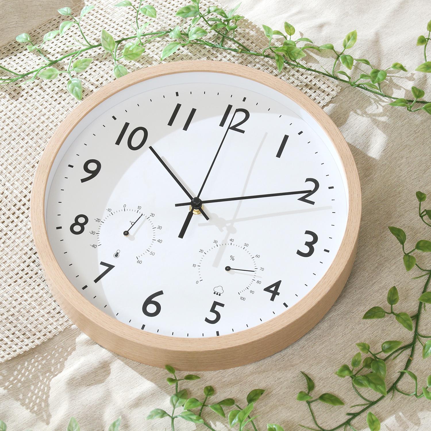 温湿度も分かる多機能なナチュラル掛け時計