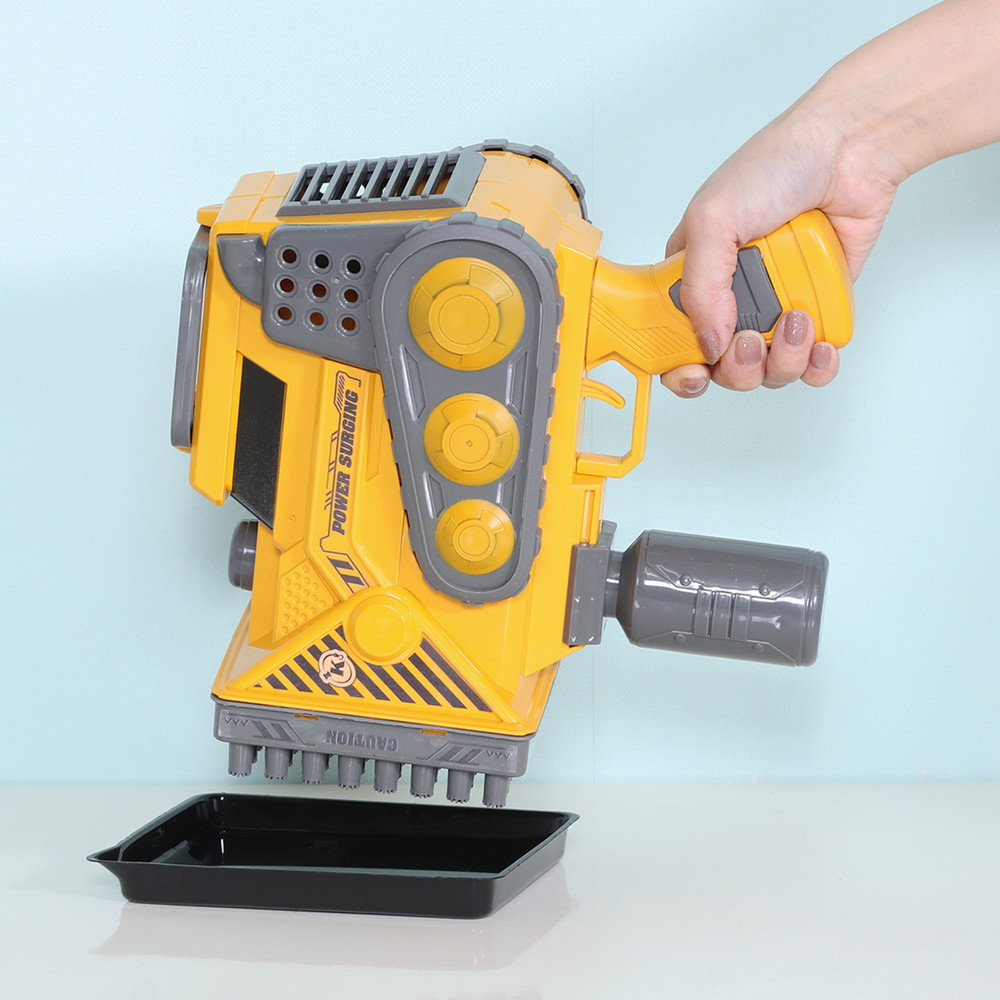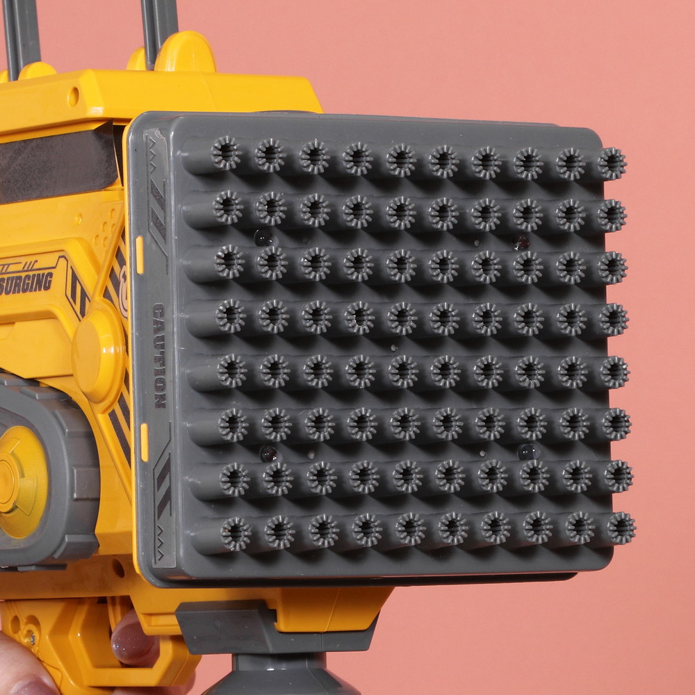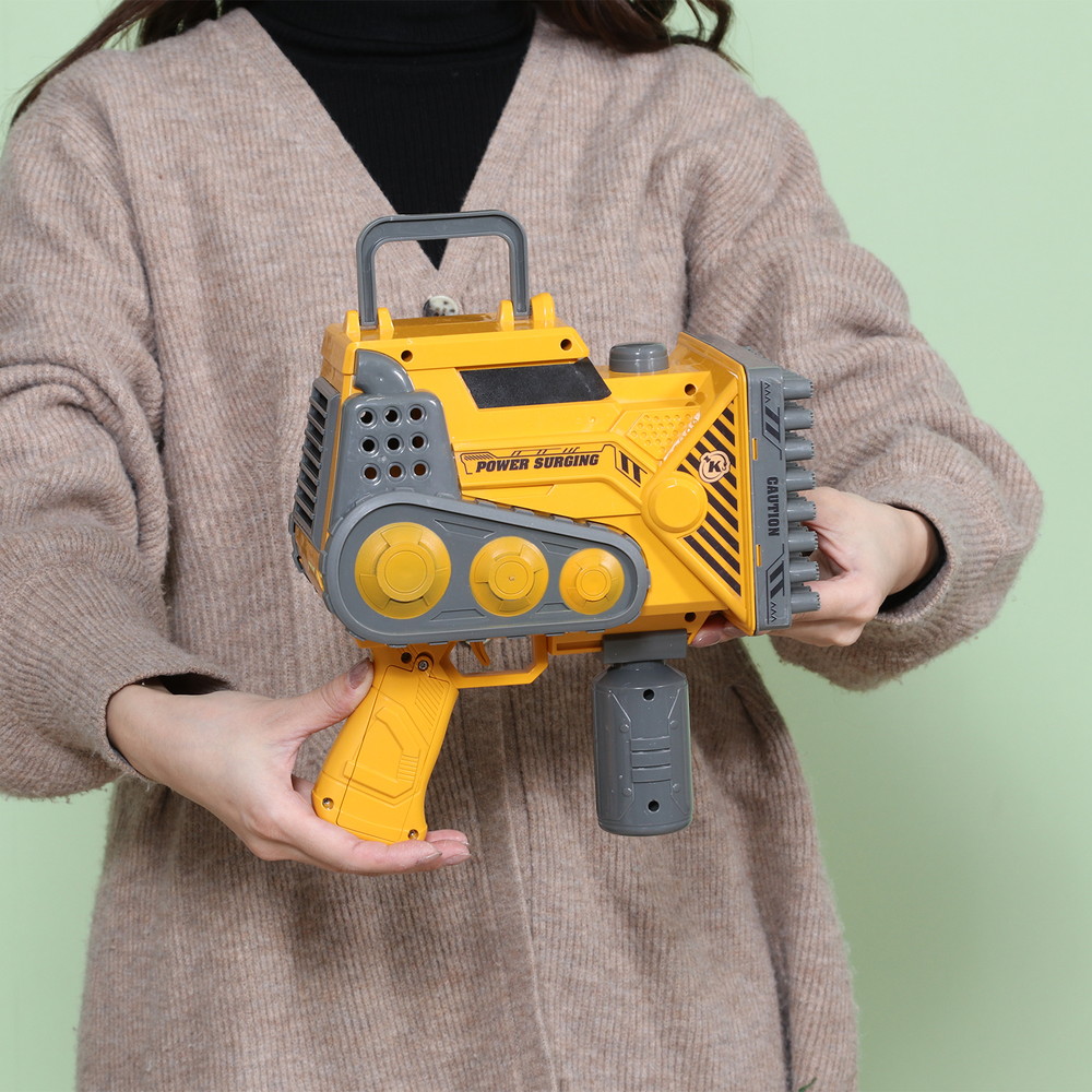 ショベルカーのようなカッコいいデザインでワクワク感が増すバズーカ型のバブルガンです