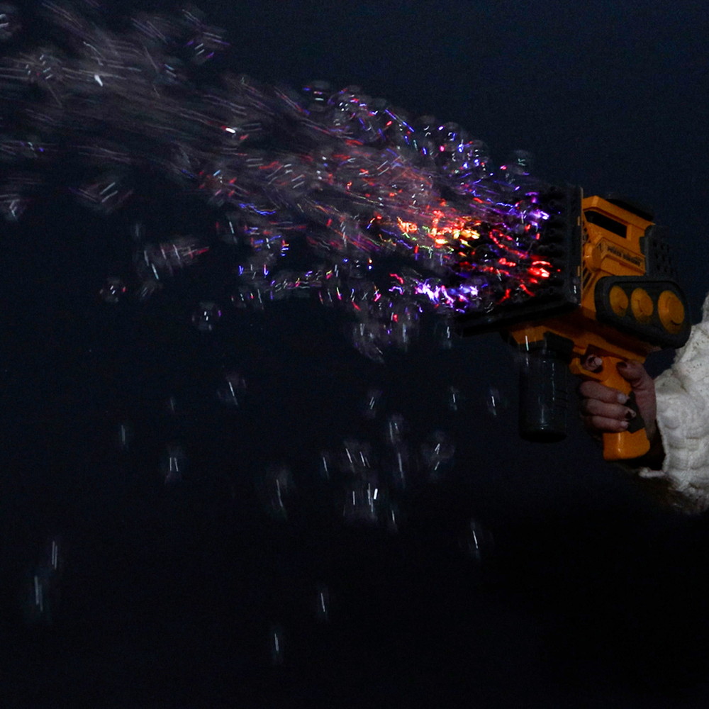 4つのカラフルなLEDライトが装備されており、暗闇でもシャボン玉を楽しむことができます。
