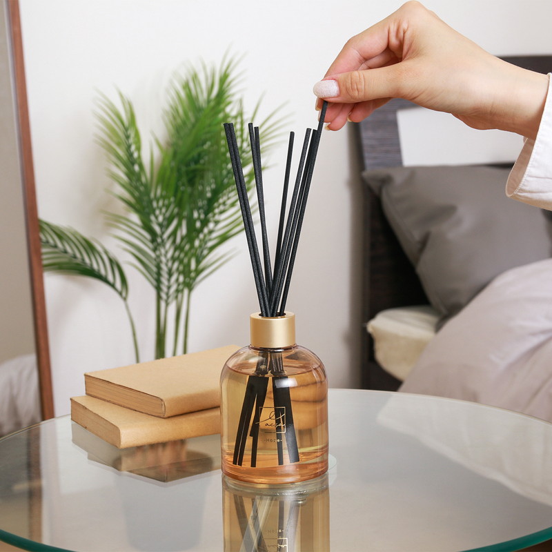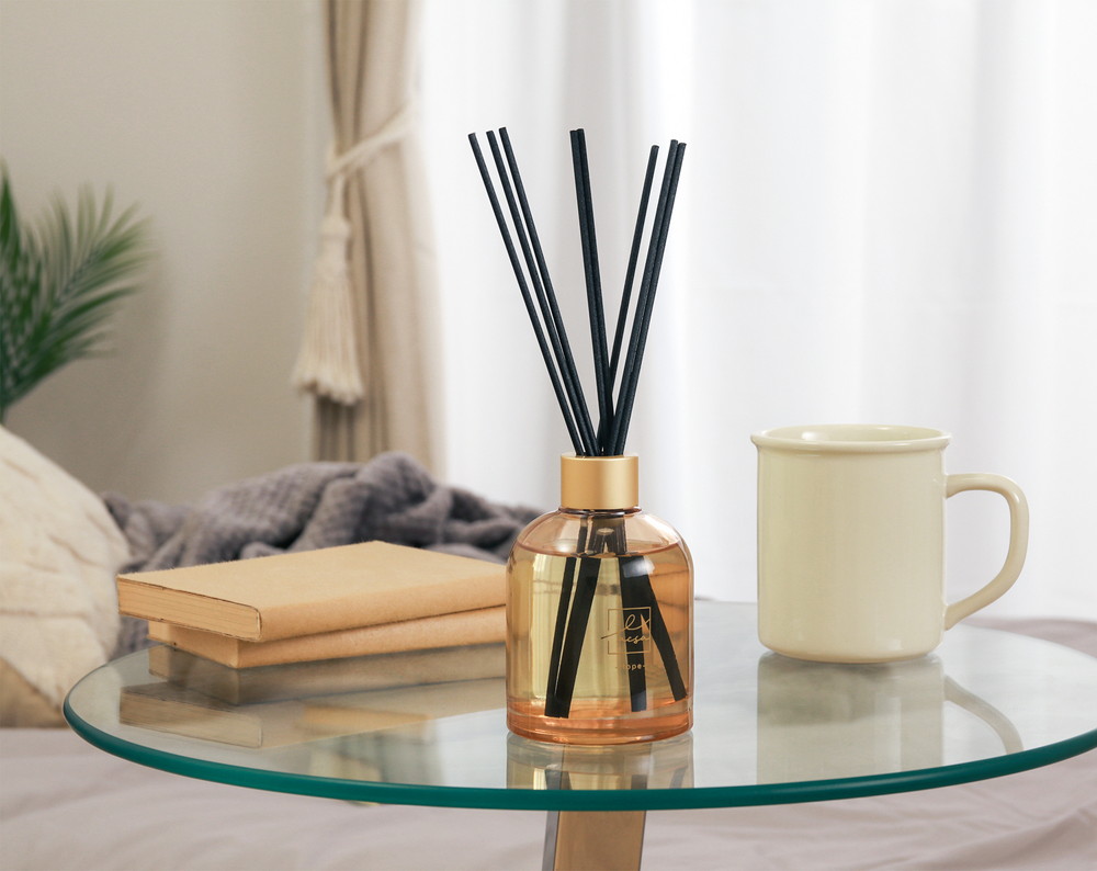 スティックが8本付属しており、差す本数で香りを調整できます。コットン素材は香りが広がる早さと範囲が広いのが特徴です。(芳香期間目安は約8週間)