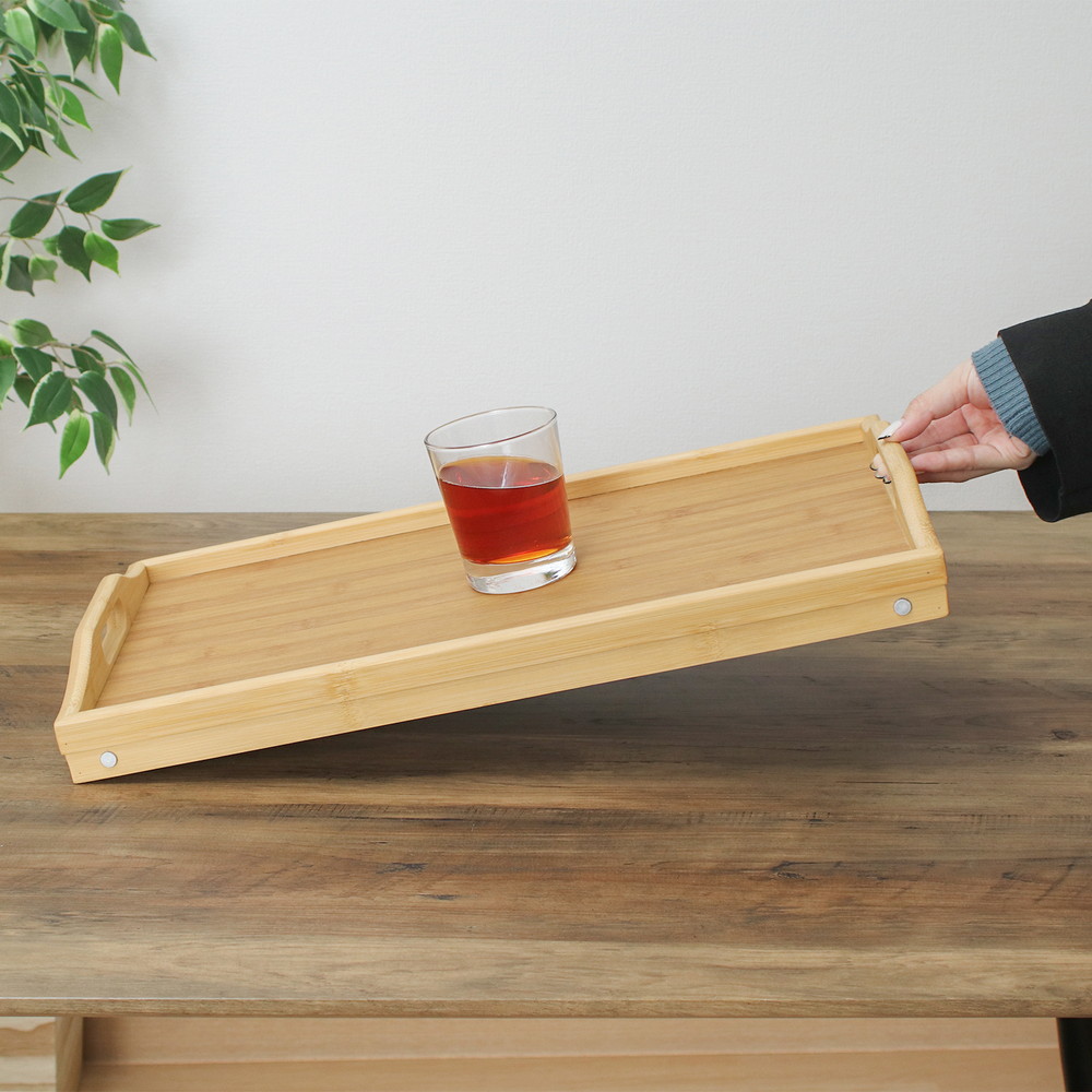 脚を折りたためばトレーとしても使用できます。持ち手もついて使いやすい!