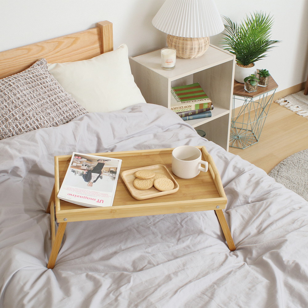 ベッドトレイにもなるので、ベッドの上でのくつろぎ時間をより充実した空間に。