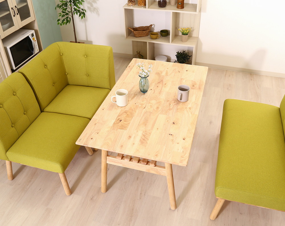 リビングダイニングでソファにも合わせてお使いいただけるよう、通常のダイニングよりも4cm~8cm低めスタイルです。