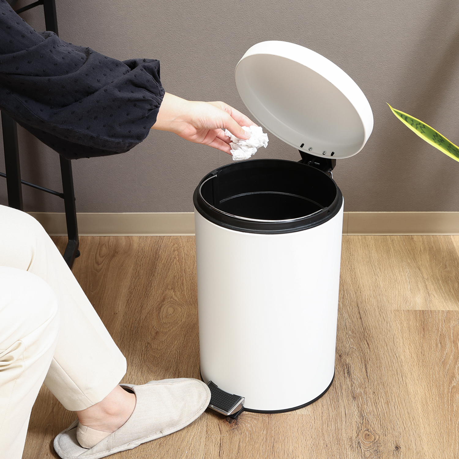 マットな質感と丸みでどんな空間にも馴染みます。蓋つきで中身が見えず、嫌なニオイも軽減してくれます。