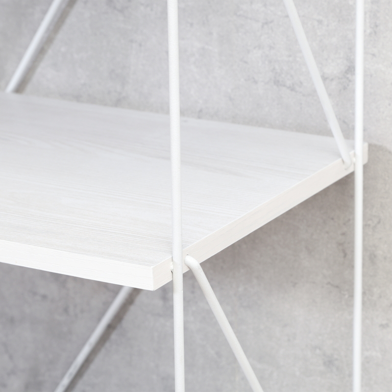 棚板の穴にワイヤーフレームを差し込むだけで完成する「ワイヤーロックシステム」を採用したシリーズで、手軽におしゃれなインテリアを楽しめます。