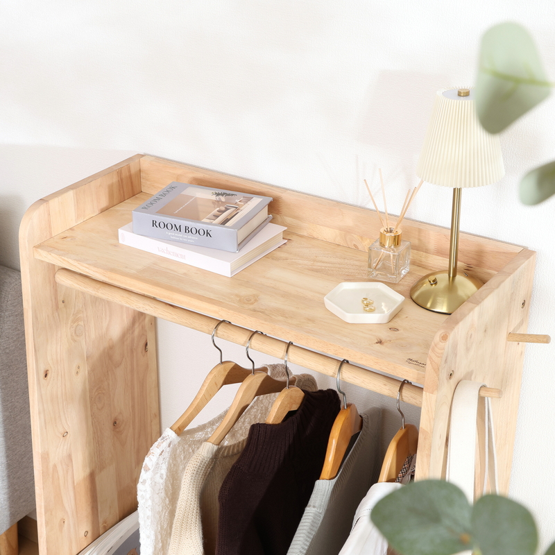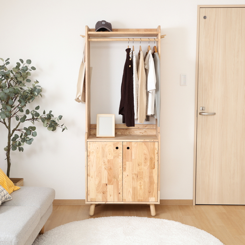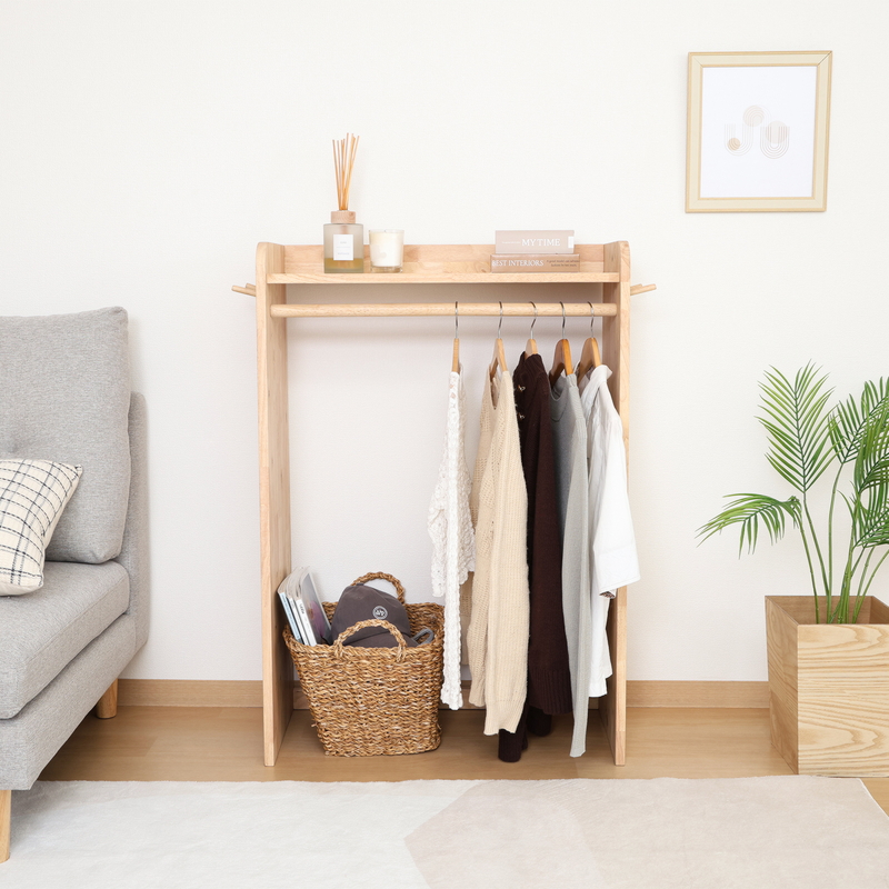 幅66cmのハンガーラックは耐荷重5kg。サッと取り出せて朝の支度にも便利です。