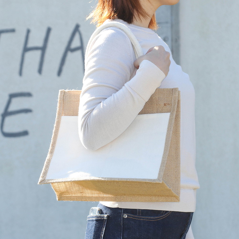 【素材・材質】■生地:ジュート(PPコーティング)、綿(PPコーティング) ■ハンドル:綿