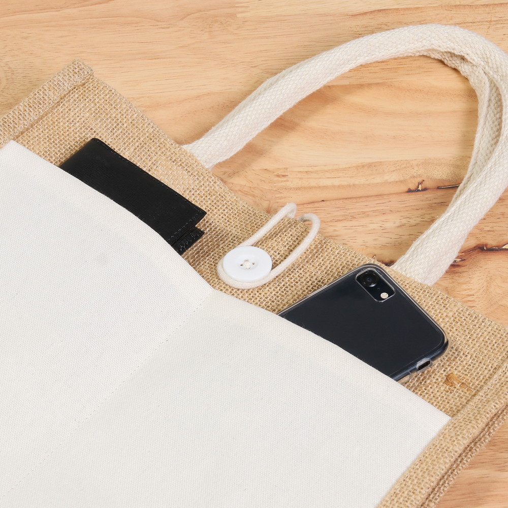 【商品名】ジュートバッグ ポケット・ボタン付き S