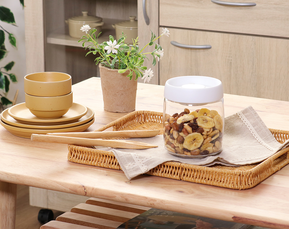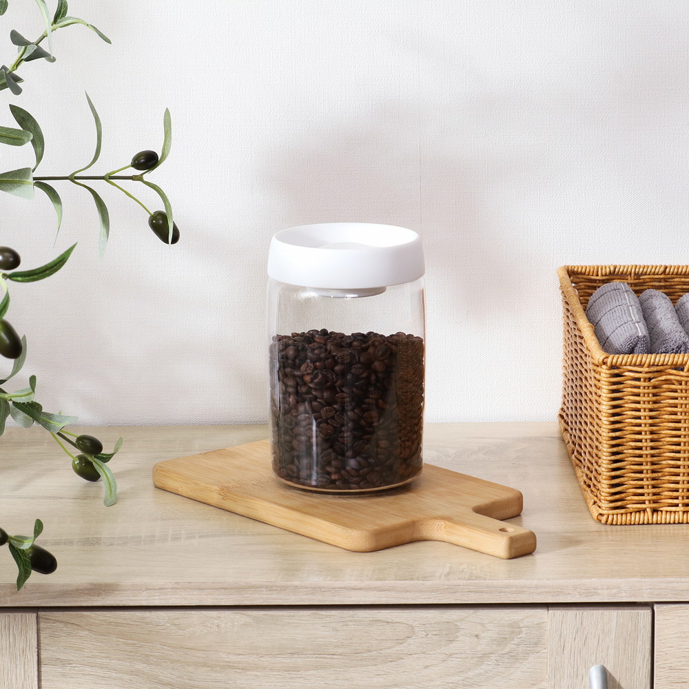 空気が抜けることで酸化や湿気を防ぎ風味や品質を長く保つことができるキャニスターです。