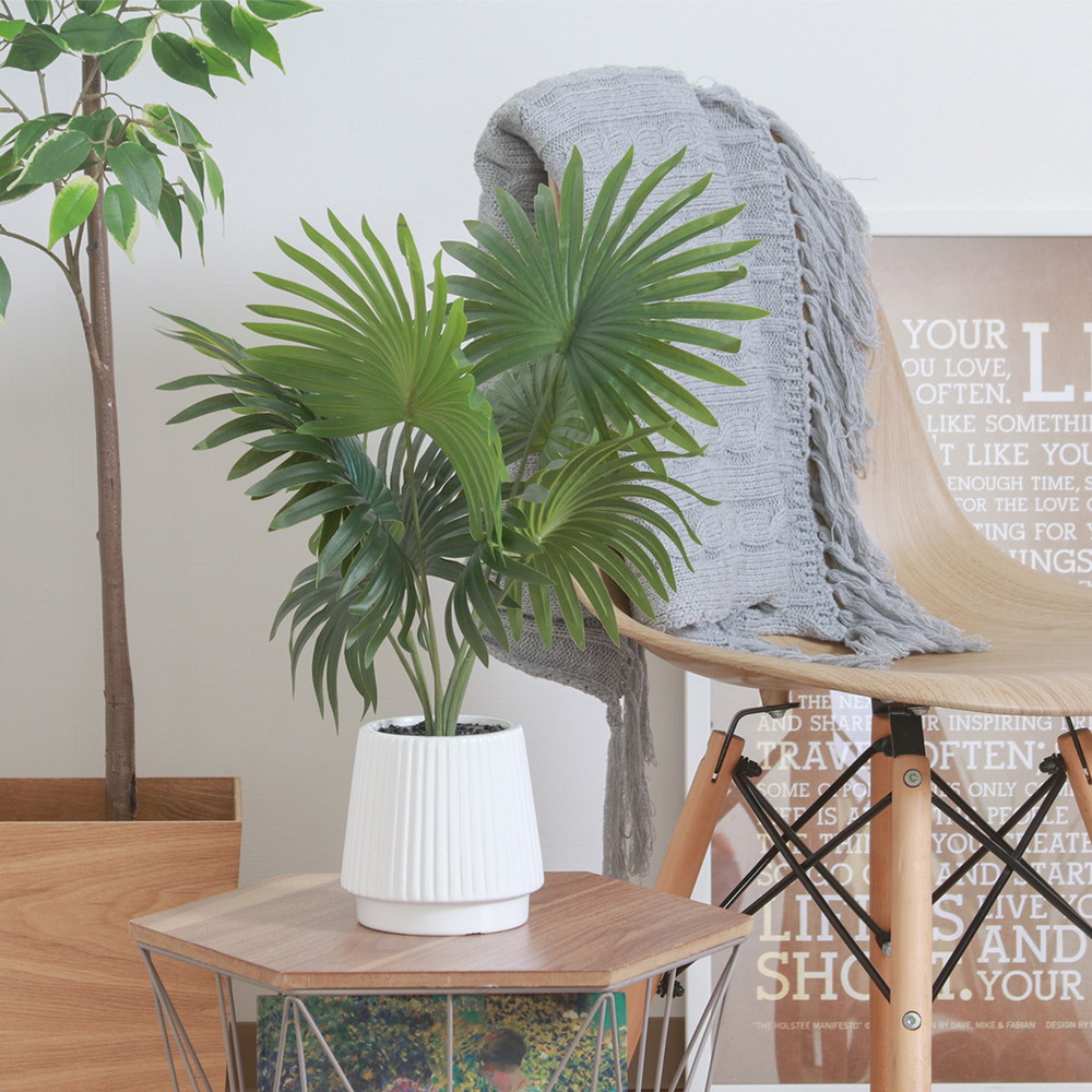 グリーンをやわらかく引き立てる丸みのあるホワイトポットはどんなインテリアとも相性抜群!