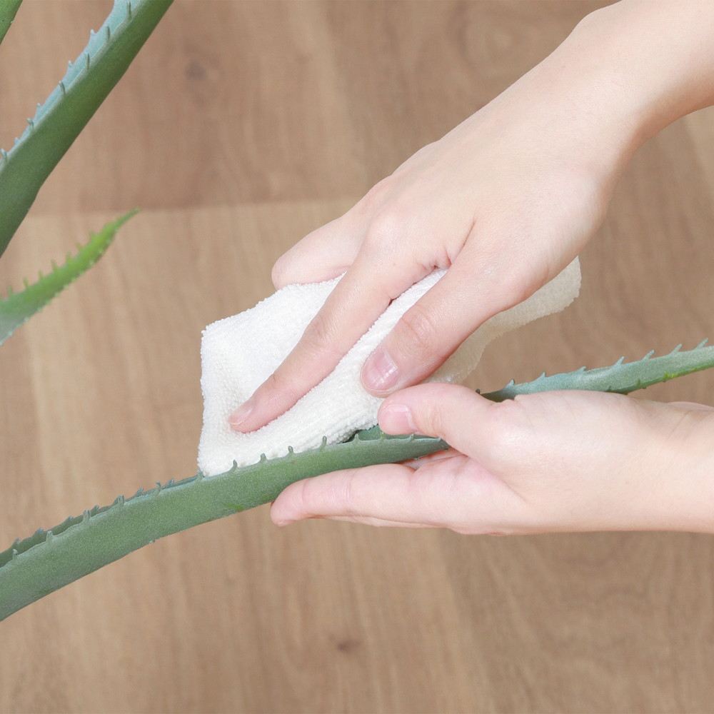 フェイクグリーンなので水やりなどの手入れを気にすることなく楽しめます。ときどき乾いたタオルでホコリをはたくだけでOK