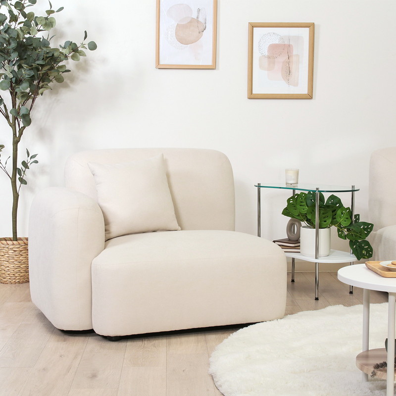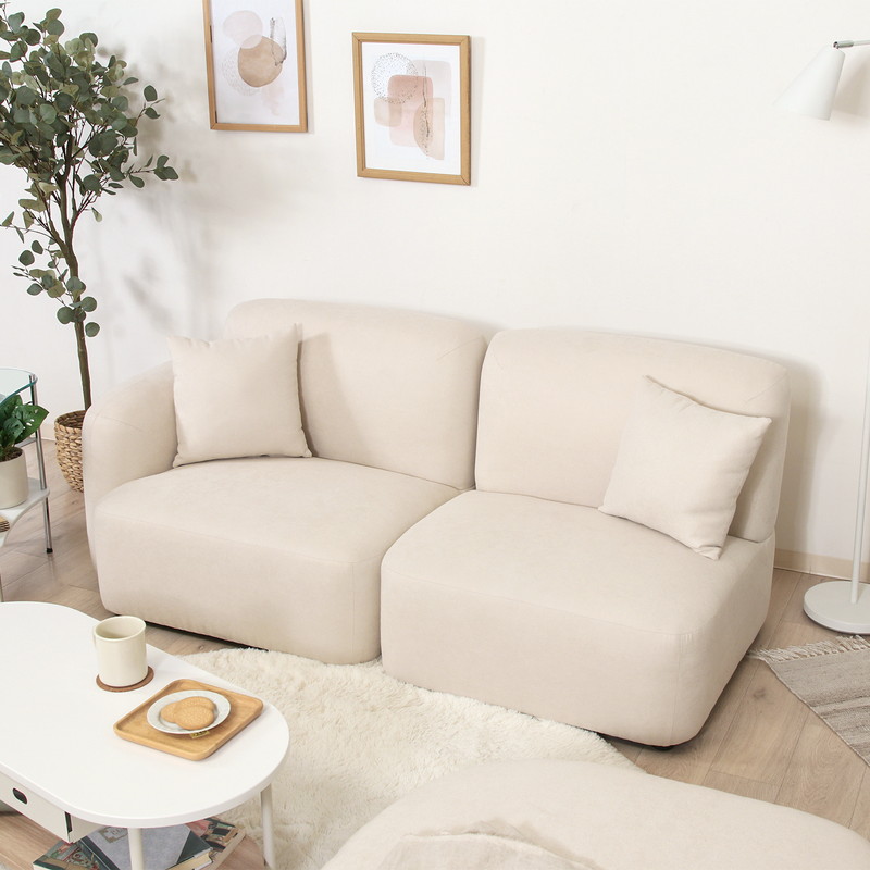 ソファとお揃いの生地のクッションが1つ付属しており、そのまま設置して使用できます。