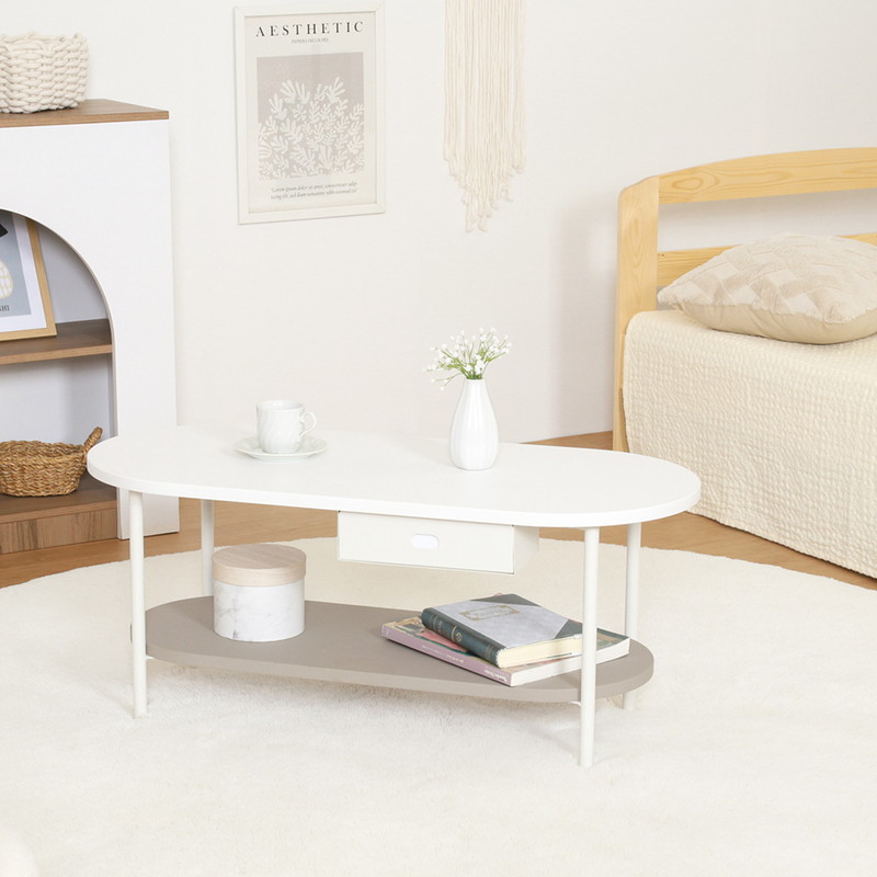 天板から脚まで統一したマットな質感と丸いフォルムが可愛いデザイン。