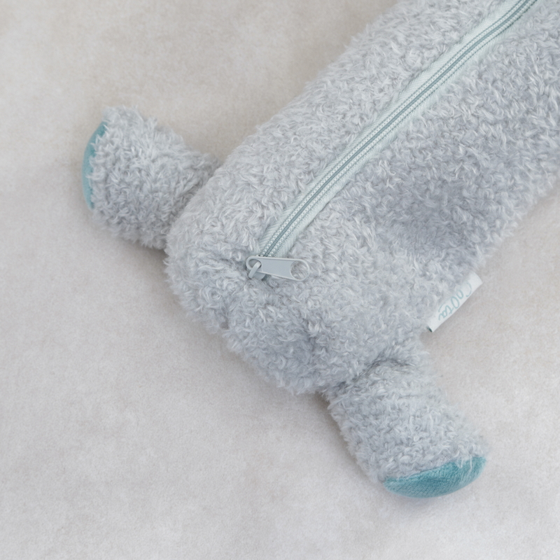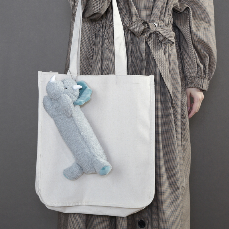 ボディに極力近づけたカラーのチャックを使用し、ぬいぐるみとしての完成度を高めました。Coltaのブランドタグがアクセントに!