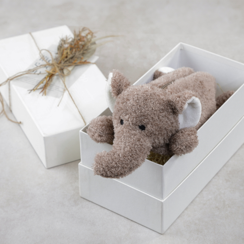 ボディに極力近づけたカラーのチャックを使用し、ぬいぐるみとしての完成度を高めました。Coltaのブランドタグがアクセントに!
