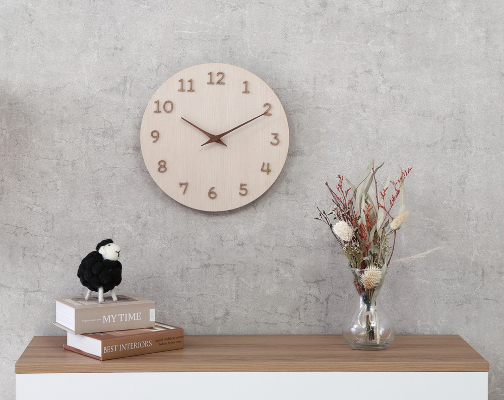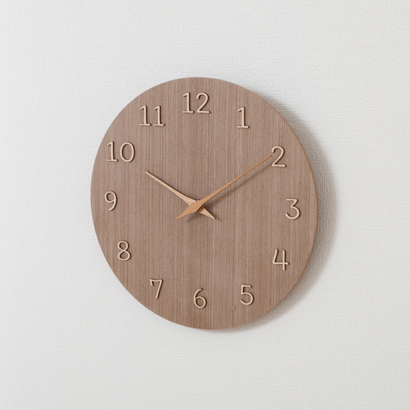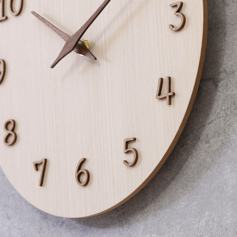 木製の針は素朴な優しさを演出。秒針がないのでスッキリして見え、視認性もばっちりです。