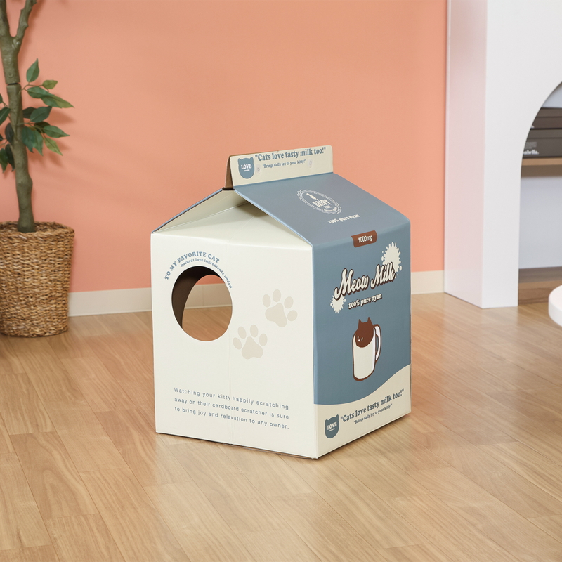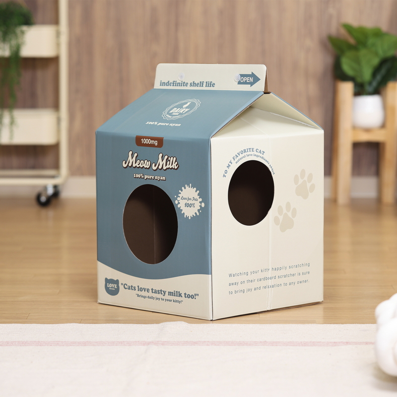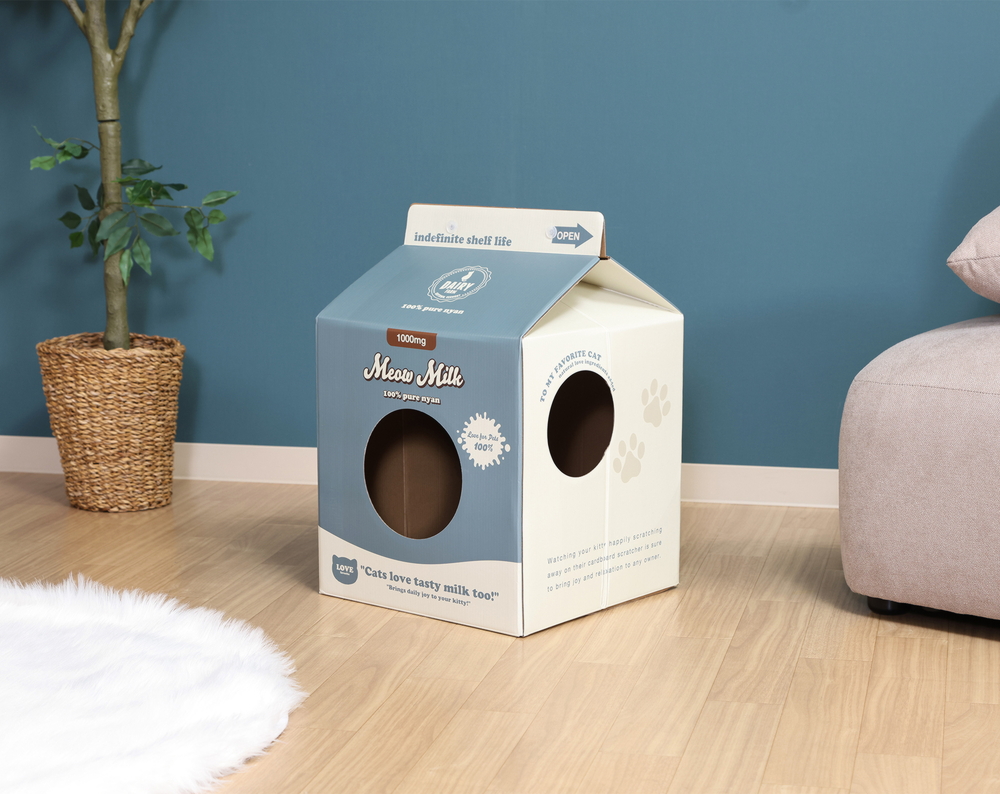 牛乳パック風のPOPなデザイン!猫の爪とぎハウス