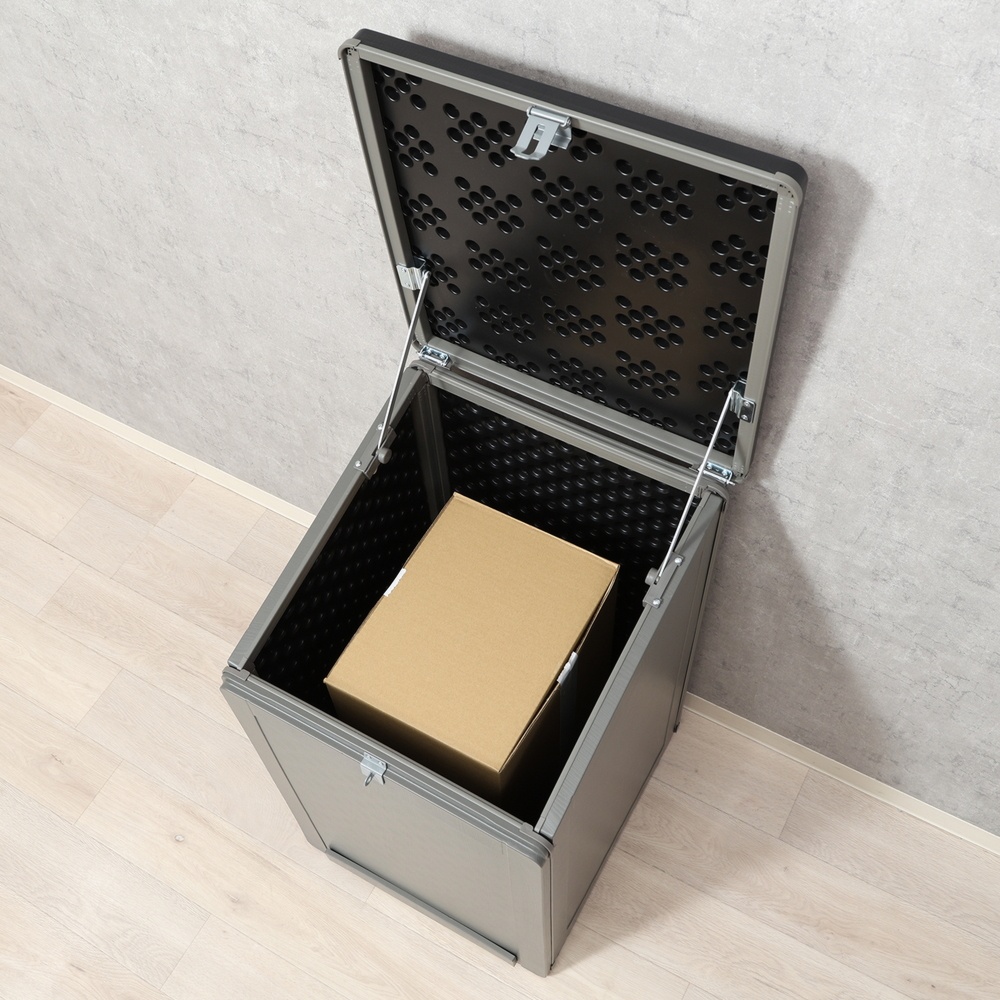 内寸幅43.5×奥行47×高さ67~77cmの大型サイズなので、大きな段ボールや複数個の荷物を収納できます。