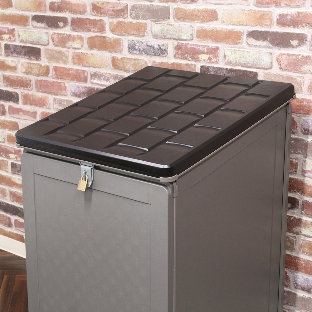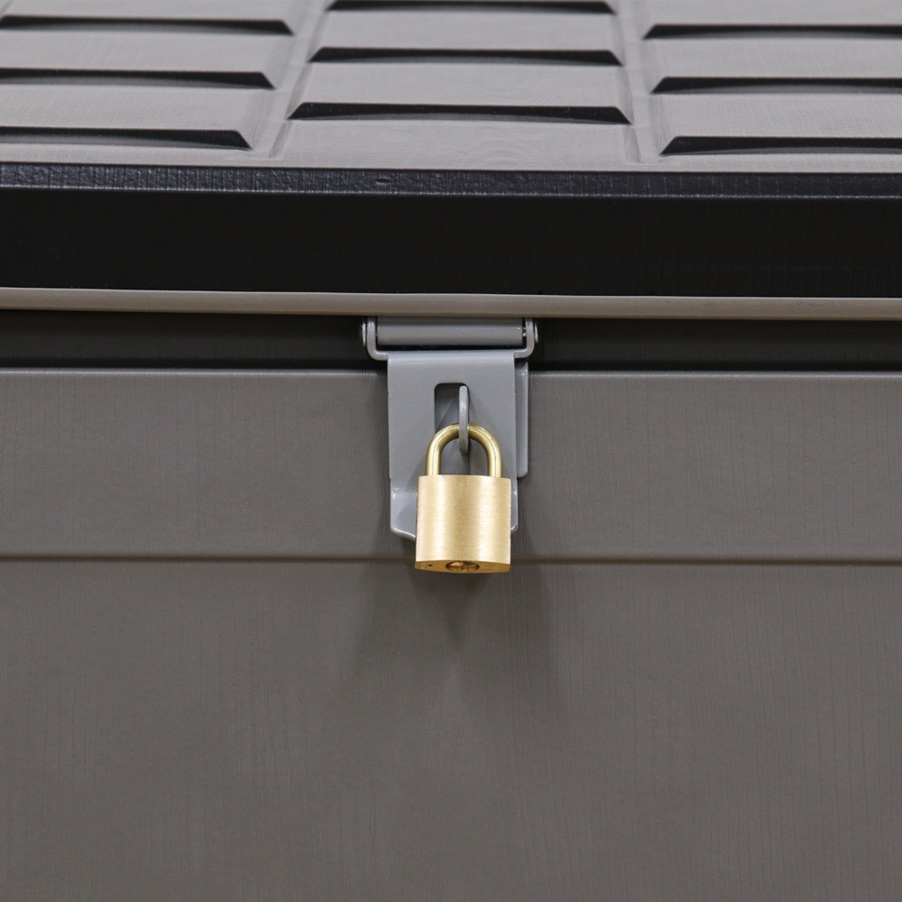 南京錠をなどでロックが可能なパーツが前面についています。頑丈な金属製で、屋外での使用も安心です。