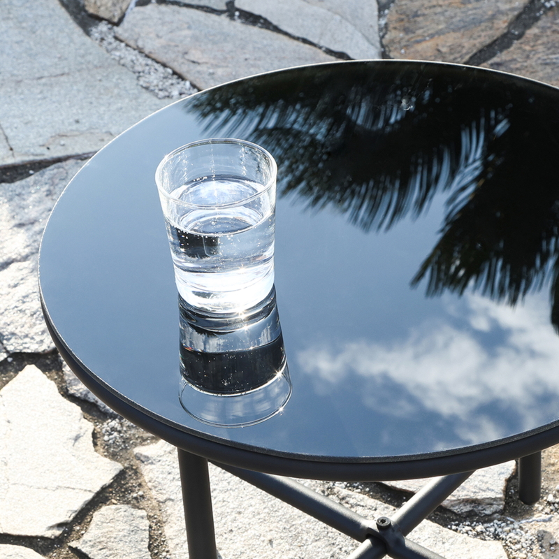 直径47cmの丸テーブルは、ドリンクや軽食を置くのにぴったり。くつろぎのひとときに寄り添います。