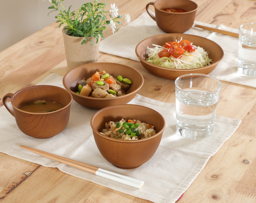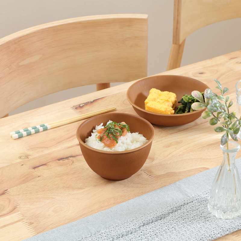 落ち着いたブラウンの木目調が、食卓にやさしいぬくもりと上品な雰囲気を添えます。