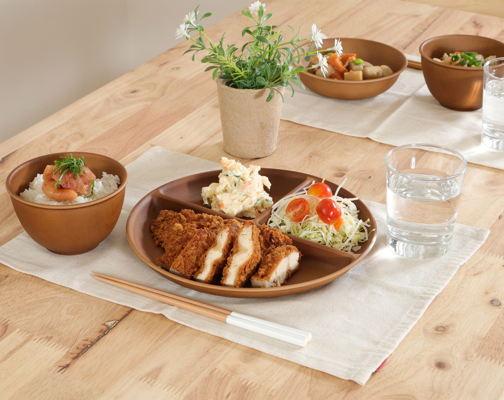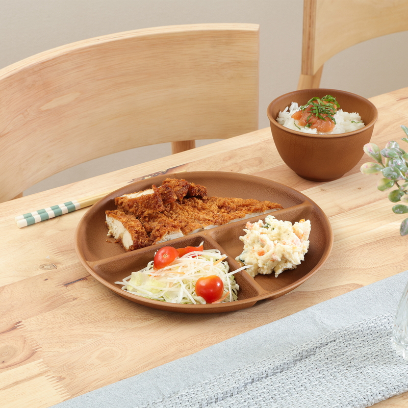 落ち着いたブラウンの木目調が、食卓にやさしいぬくもりと上品な雰囲気を添えます。