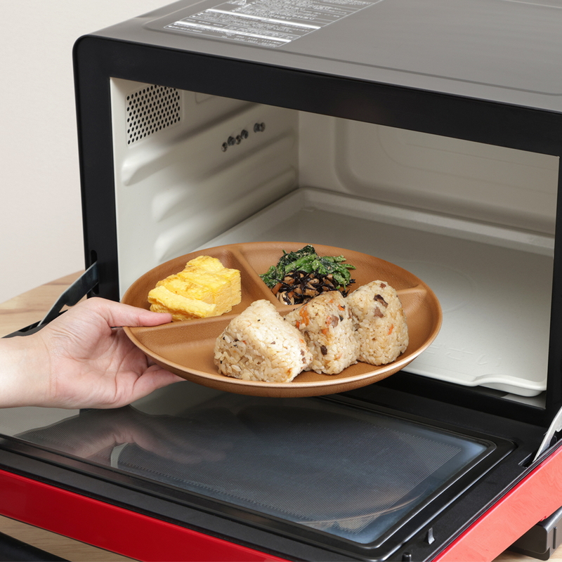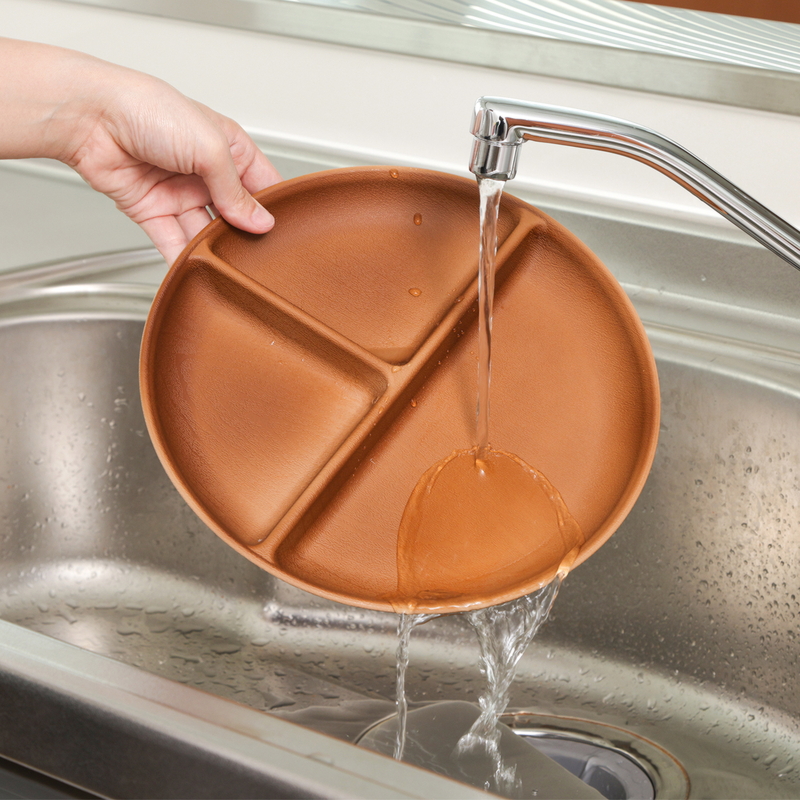 水も油もサッと弾く!撥水加工ラウンドプレート仕切り付き(合成漆器)