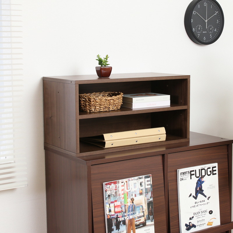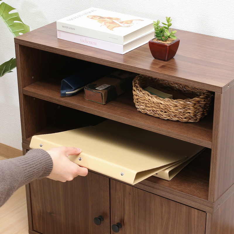 2段に分かれているので、ファイルや書類などの高さのないものを分けて収納することができます。