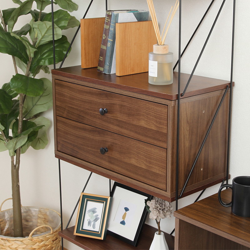 表面はプリント紙化粧繊維板を使い、リアルな木目を感じることができます。お部屋に馴染む飽きの来ないデザインです。