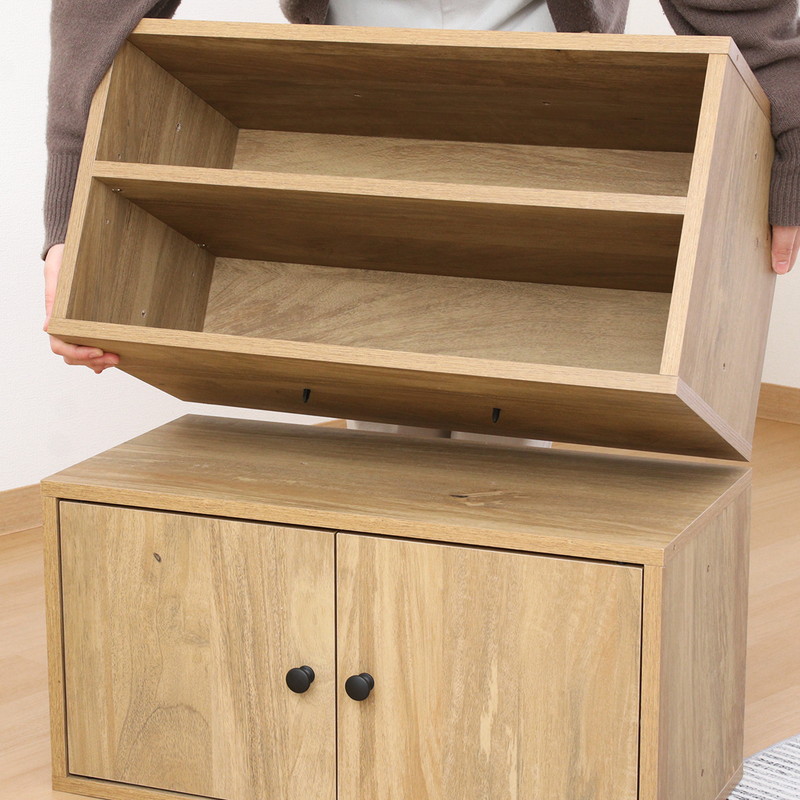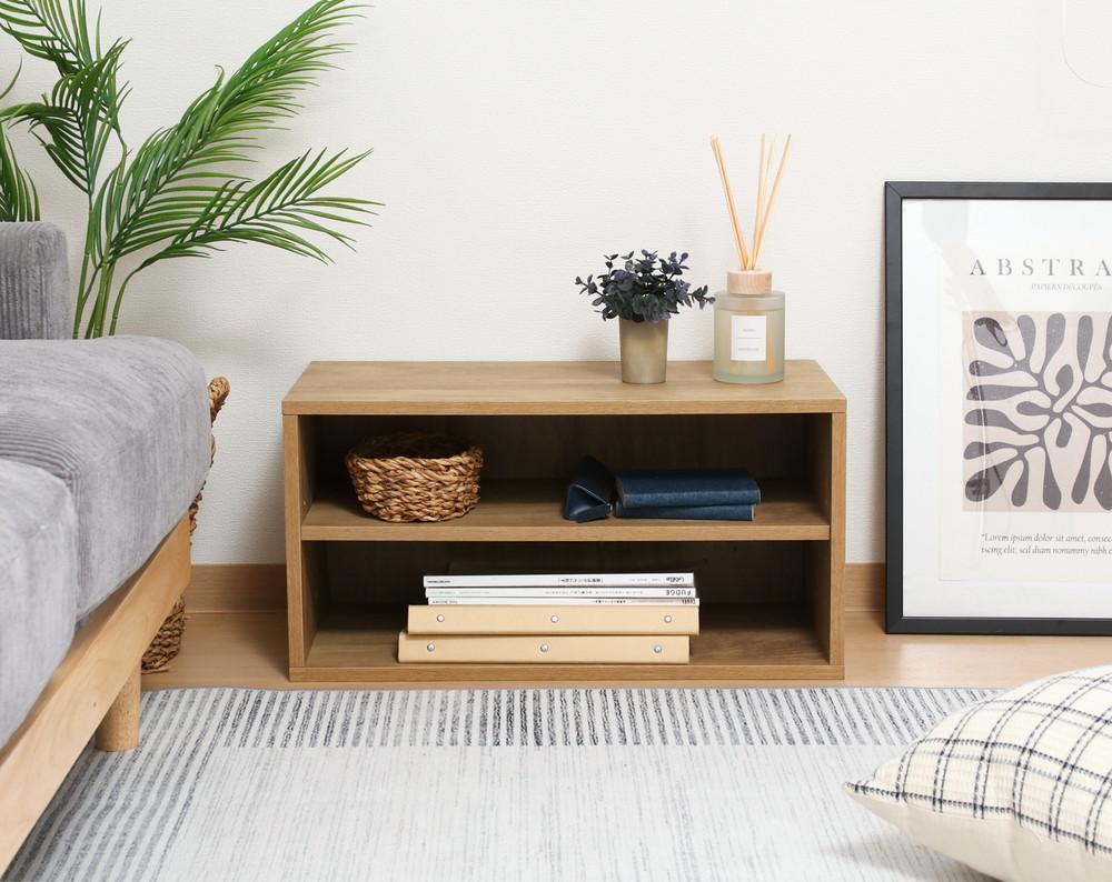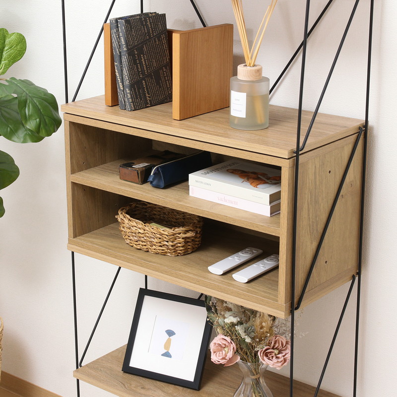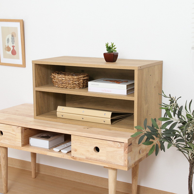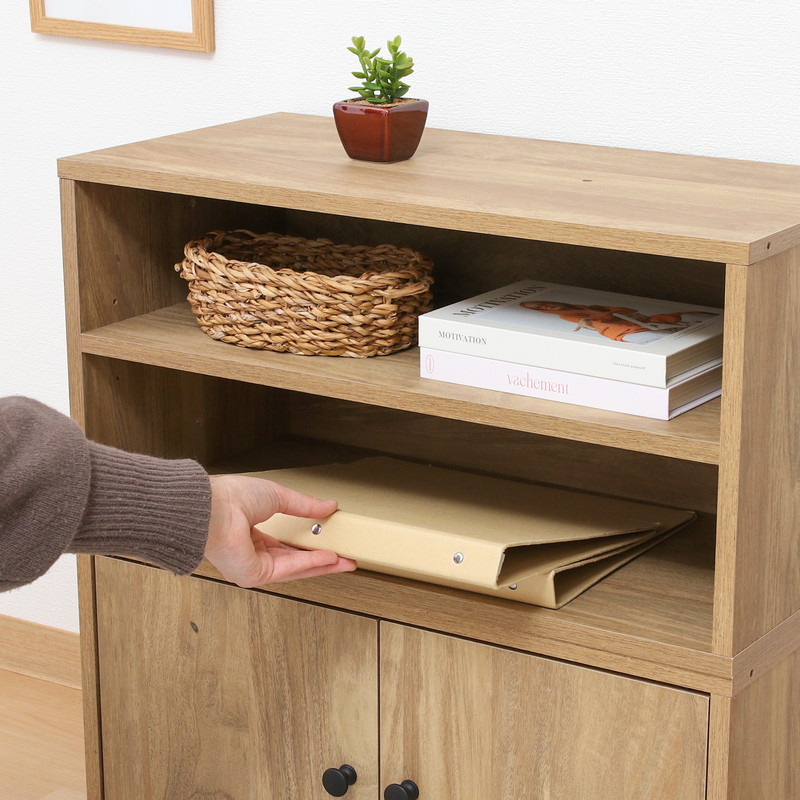 2段に分かれているので、ファイルや書類などの高さのないものを分けて収納することができます。