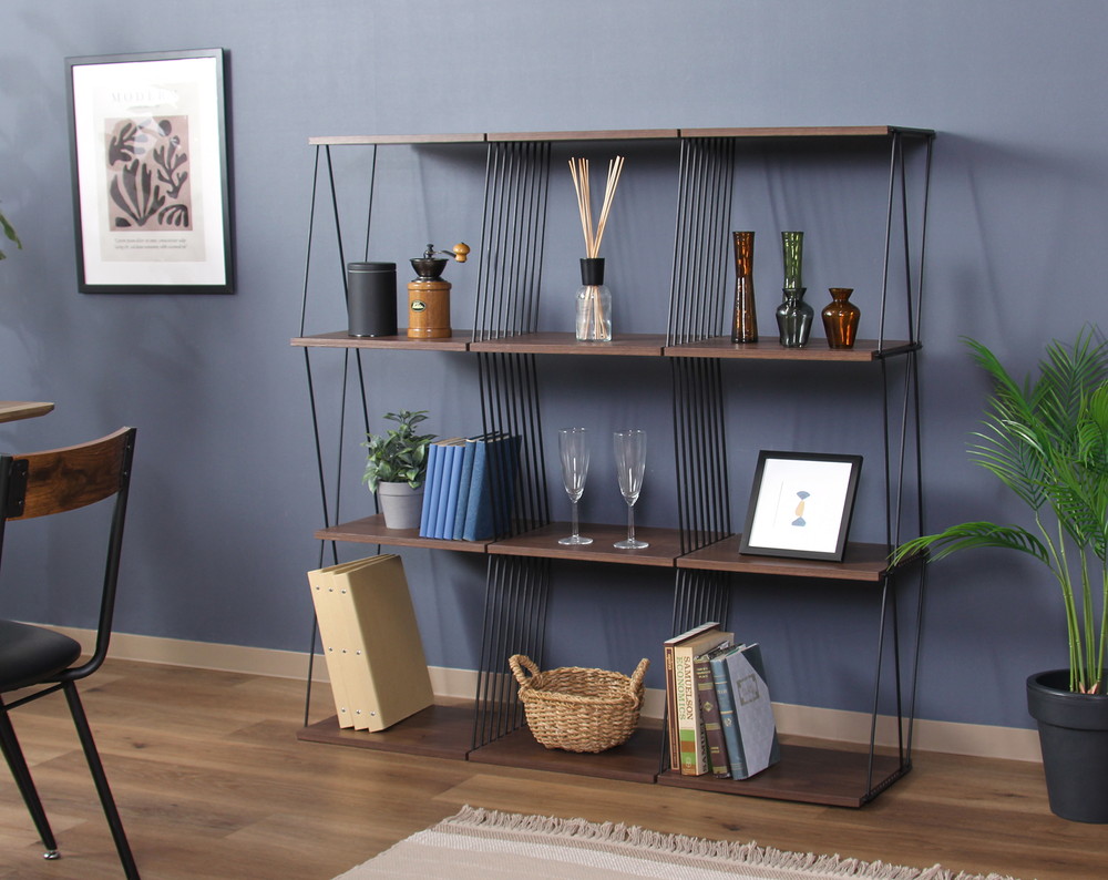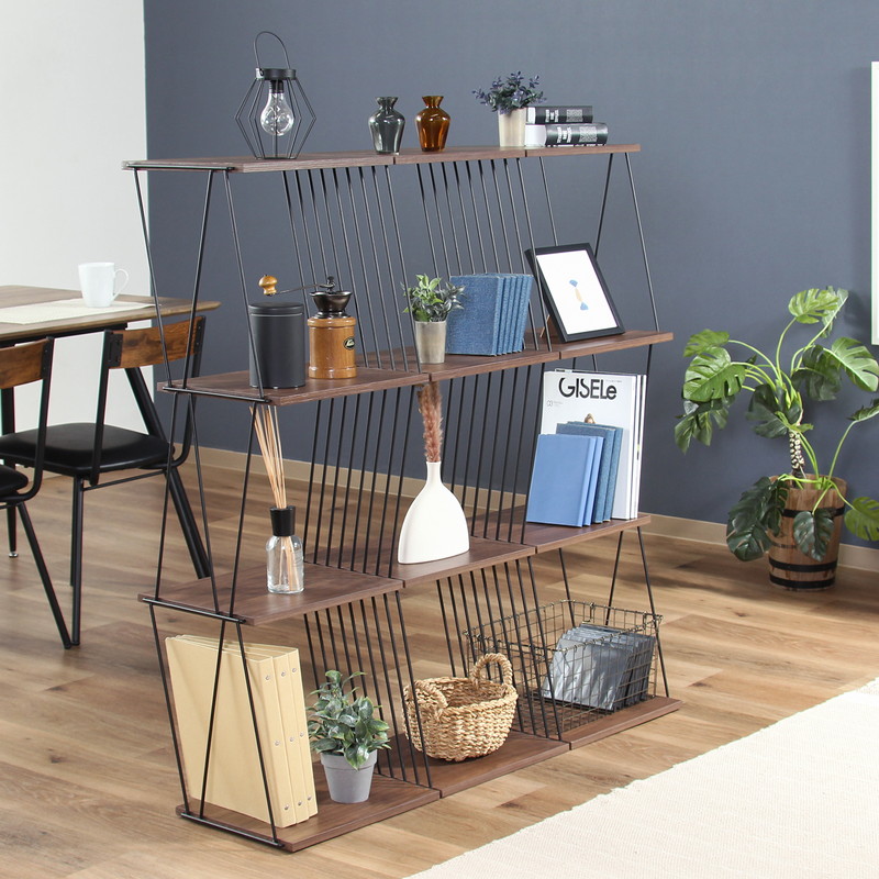表裏がないので間仕切りとしても使用できます。オープンデザインなのでお部屋に圧迫感を出しません。