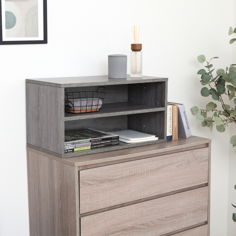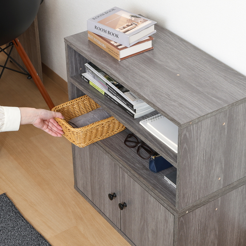 2段に分かれているので、ファイルや書類などの高さのないものを分けて収納することができます。