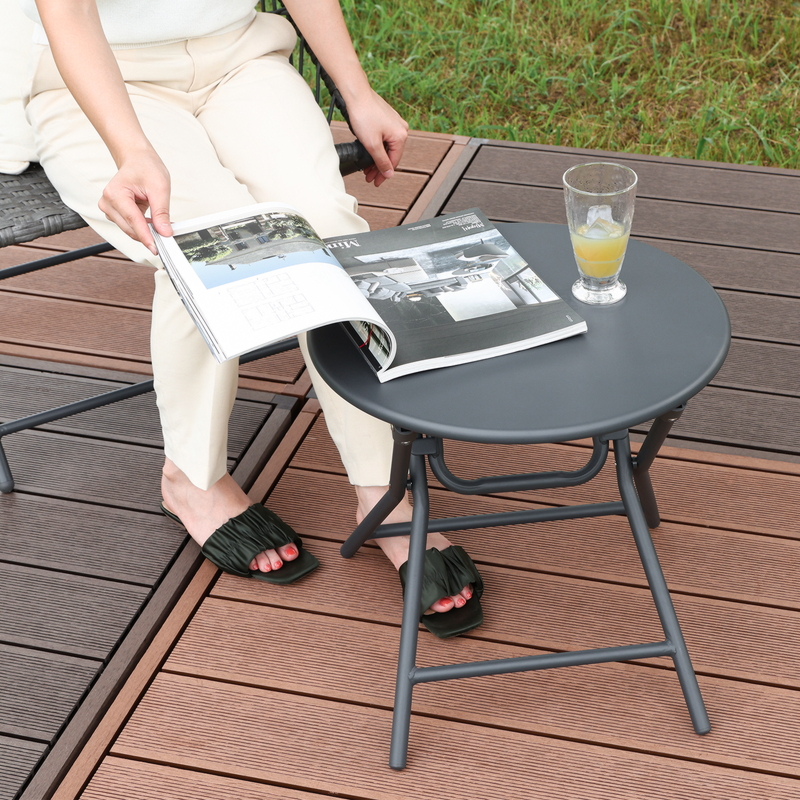 大きくなりがちなガーデンファニチャーですが、この丸テーブルは直径45cmとドリンクや軽食を広げるのにちょうどいいサイズです。