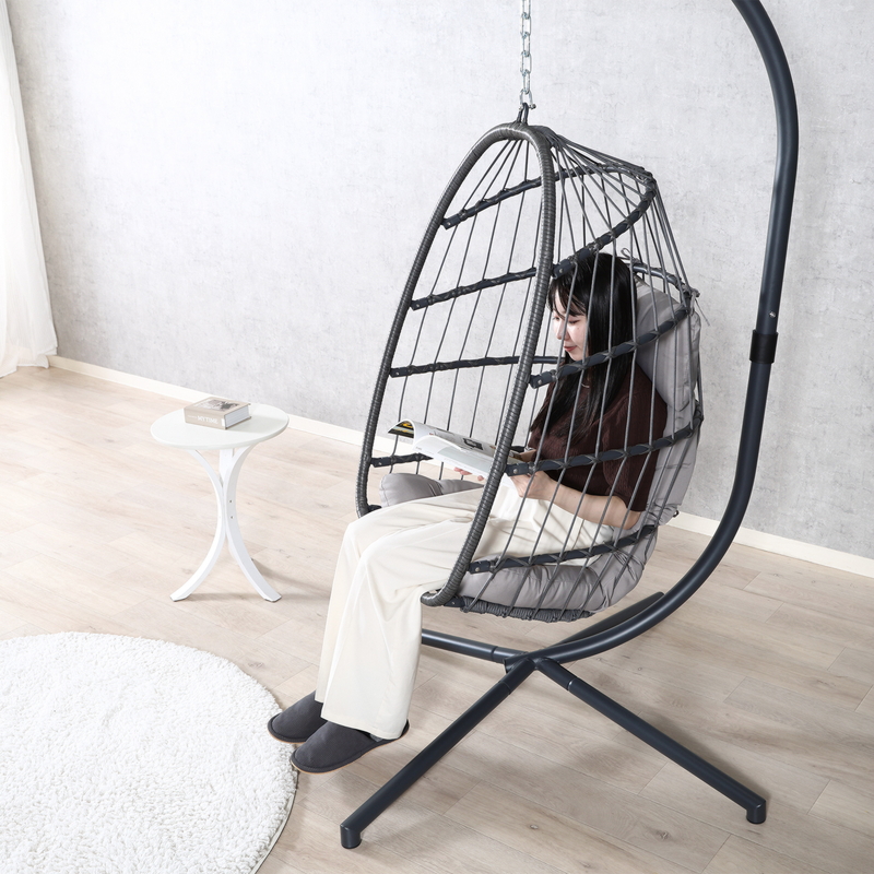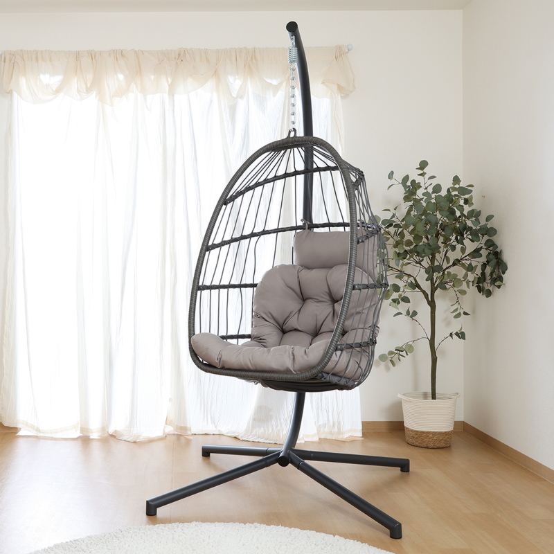 チェアの高さは、吊り下げるチェーンの位置で調整できます。