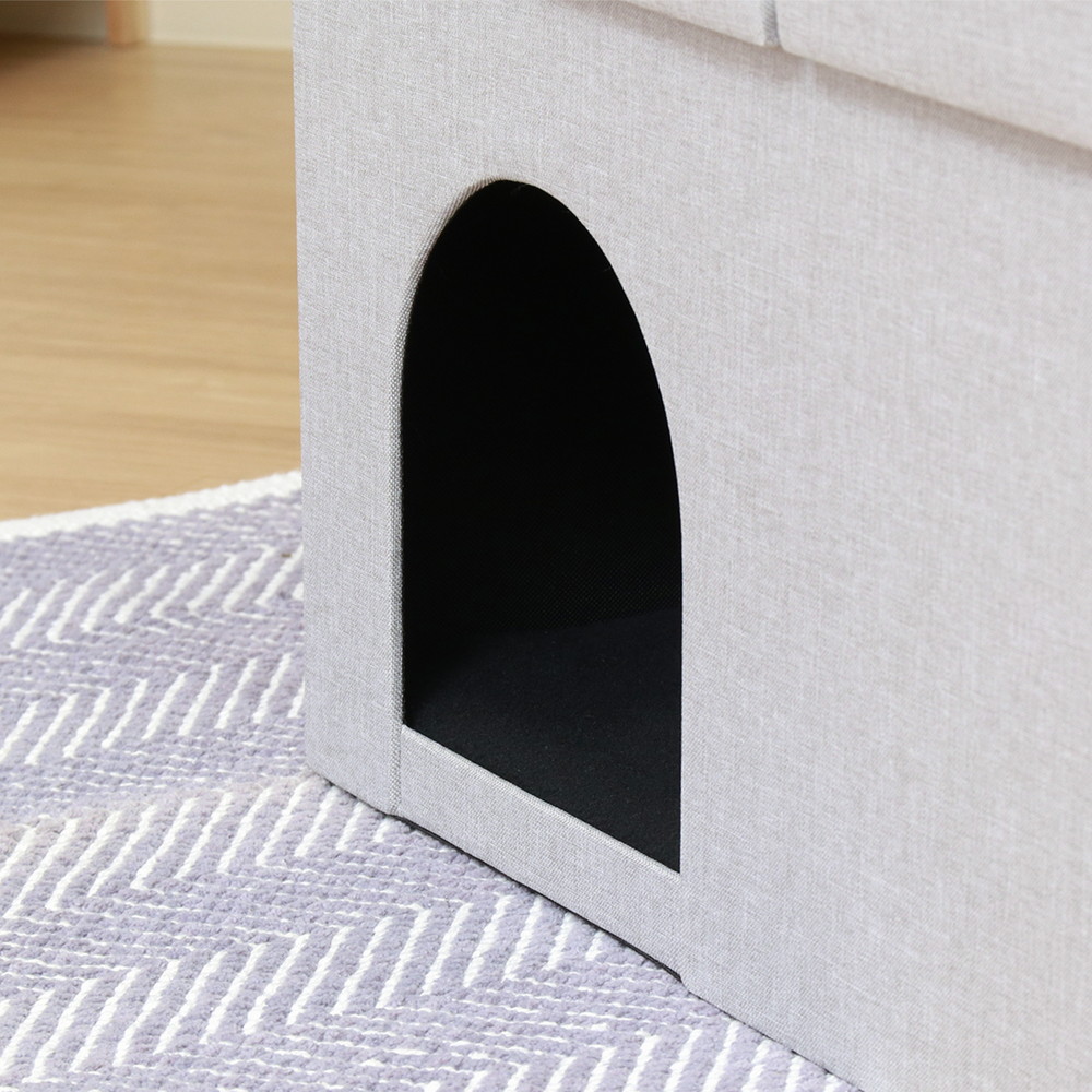 ハウス内のクッションには、ポリエステルボアを使用。やわらかい質感で、ペットが快適にくつろげます。