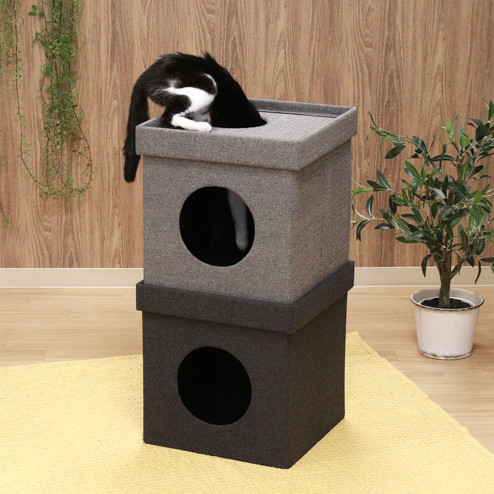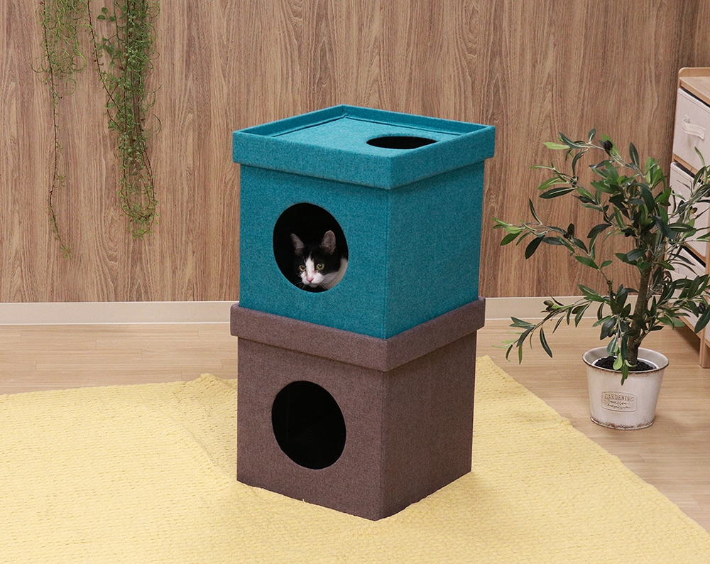 ペットも喜ぶ2段のキューブハウス!背の高いペットハウスもバイカラーだから、お洒落でかわいい!