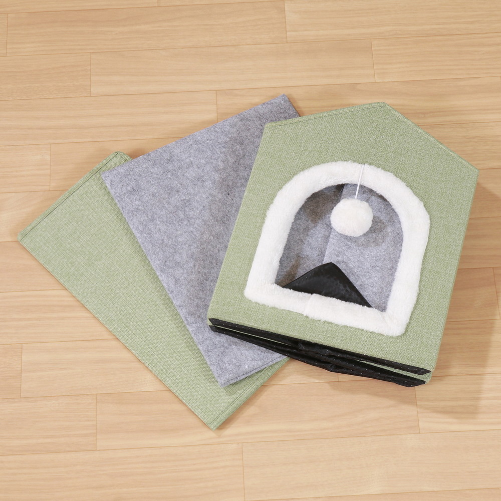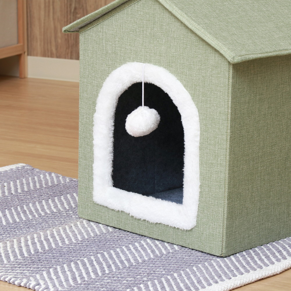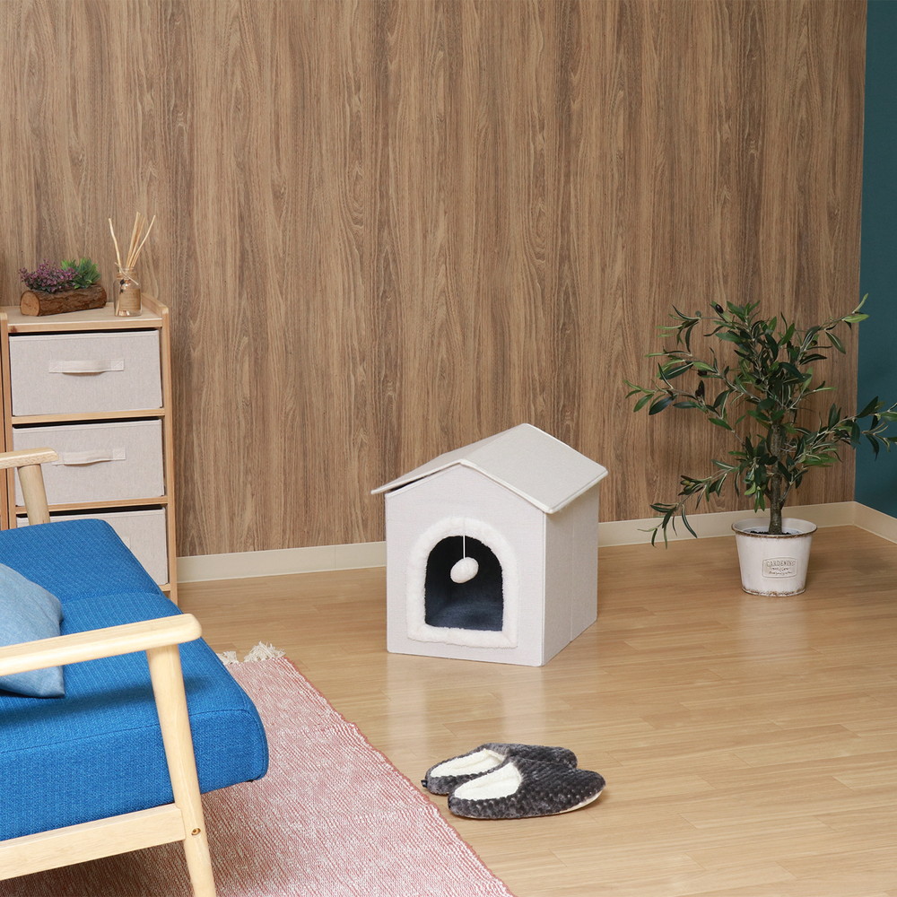 ポンポンがかわいいアクセント!三角屋根のペットハウス