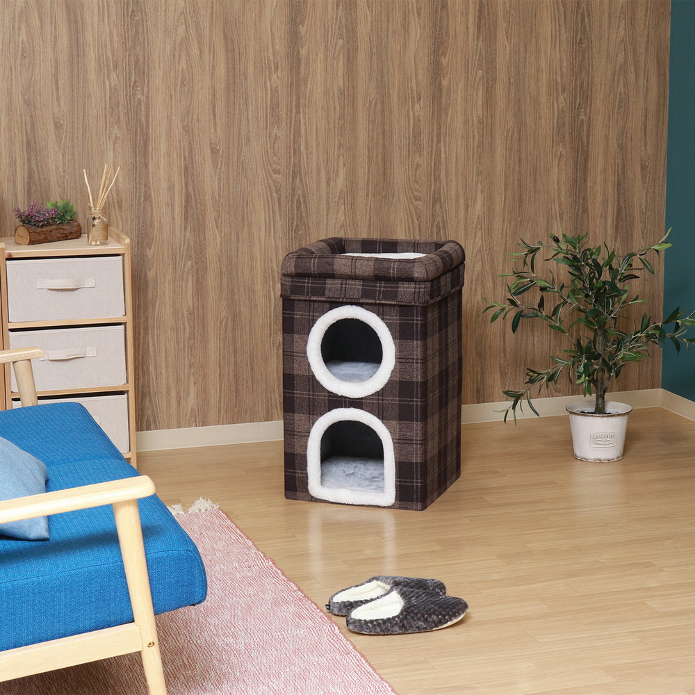 上下2つのルームで、ペットの気分で自由に選べる!2匹でそれぞれ使ったり、1つはペット用品の収納に使ってもOK!