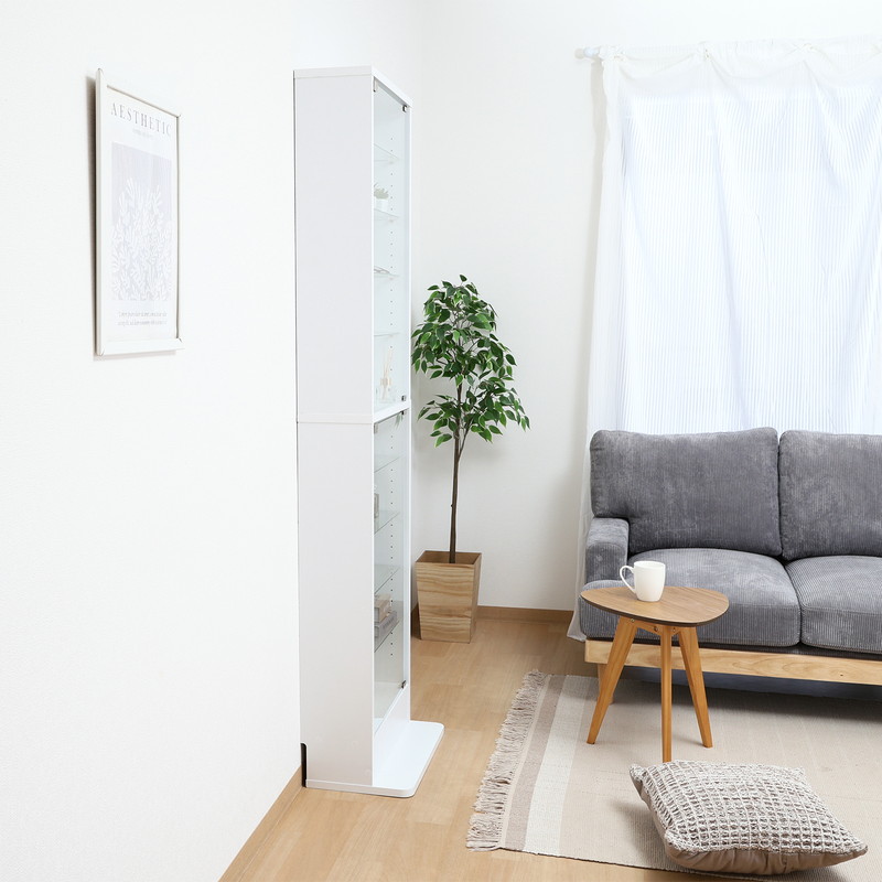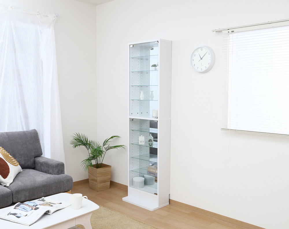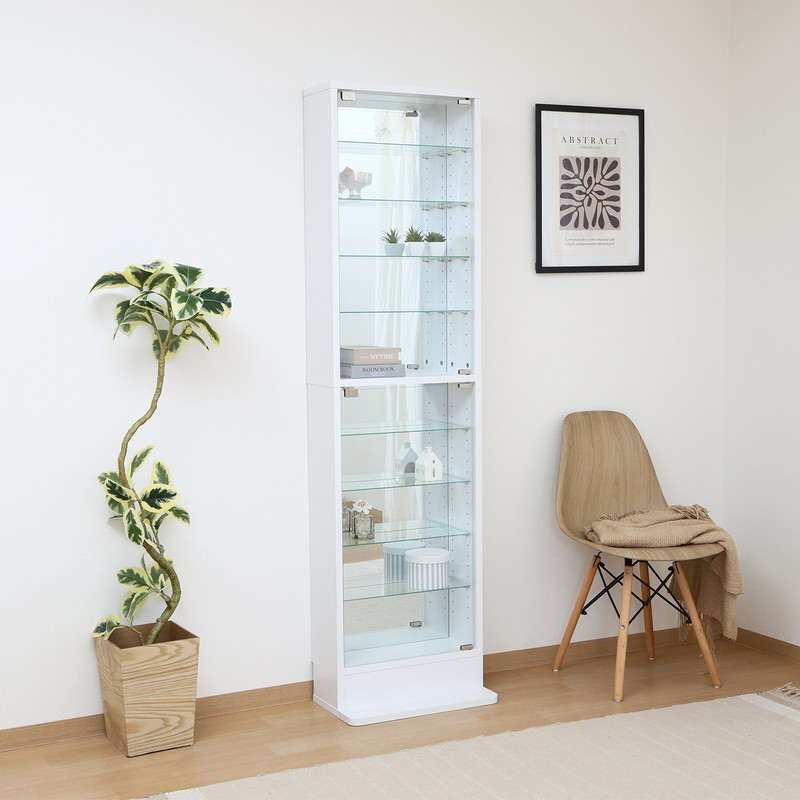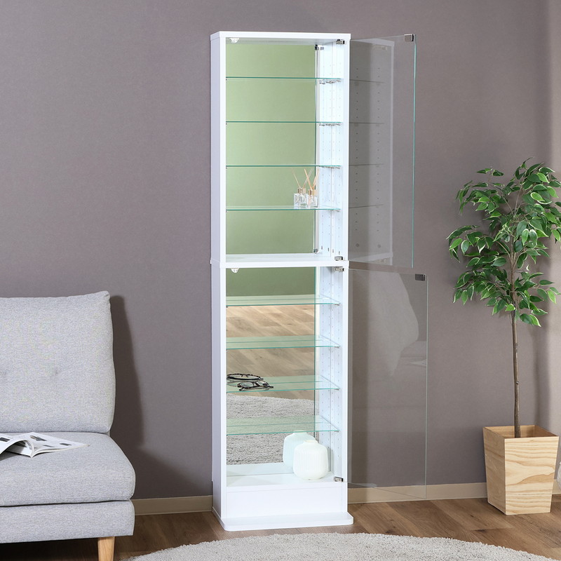 スリムだけど大容量のハイタイプガラスコレクションケース 背面ミラー