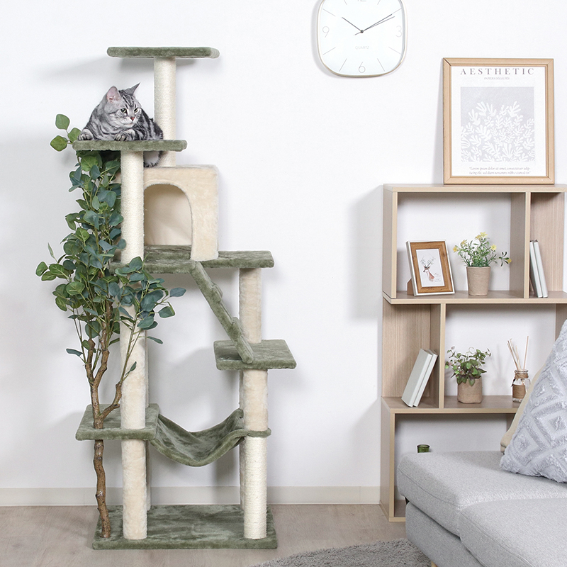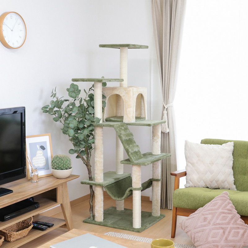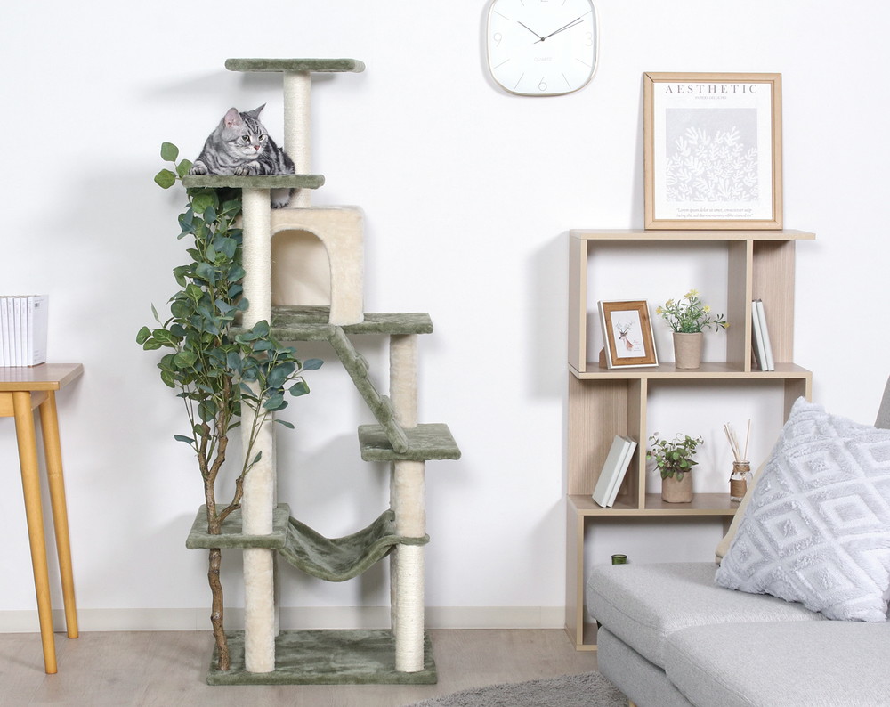 キャットタワーとフェイクグリーンがひとつに!遊び心満載のキャットツリー