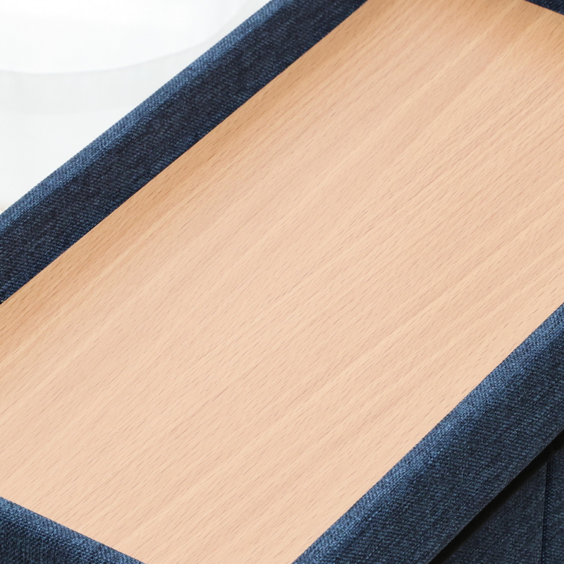 ファブリックと相性抜群の木目調天板は空間に温かみをプラスします。
